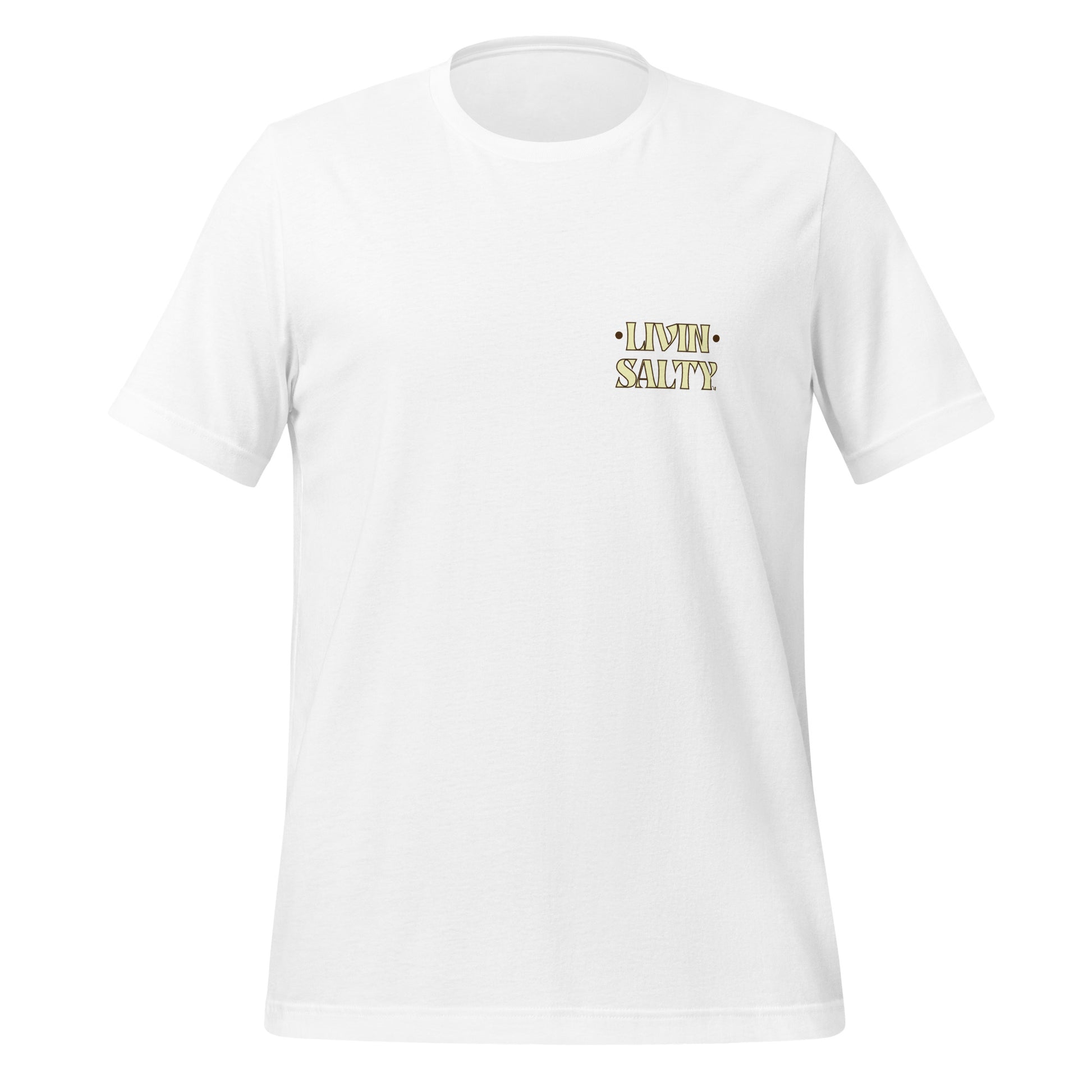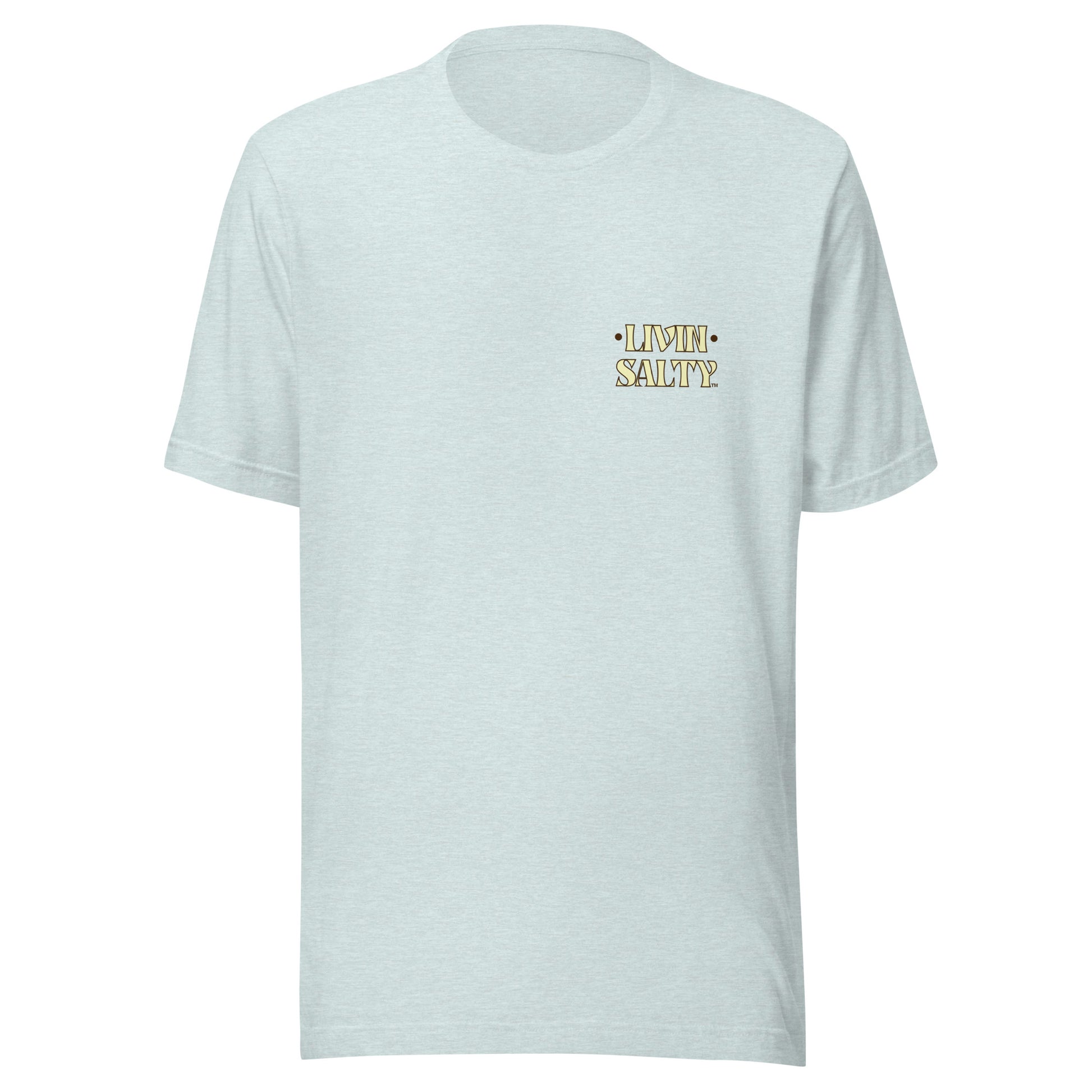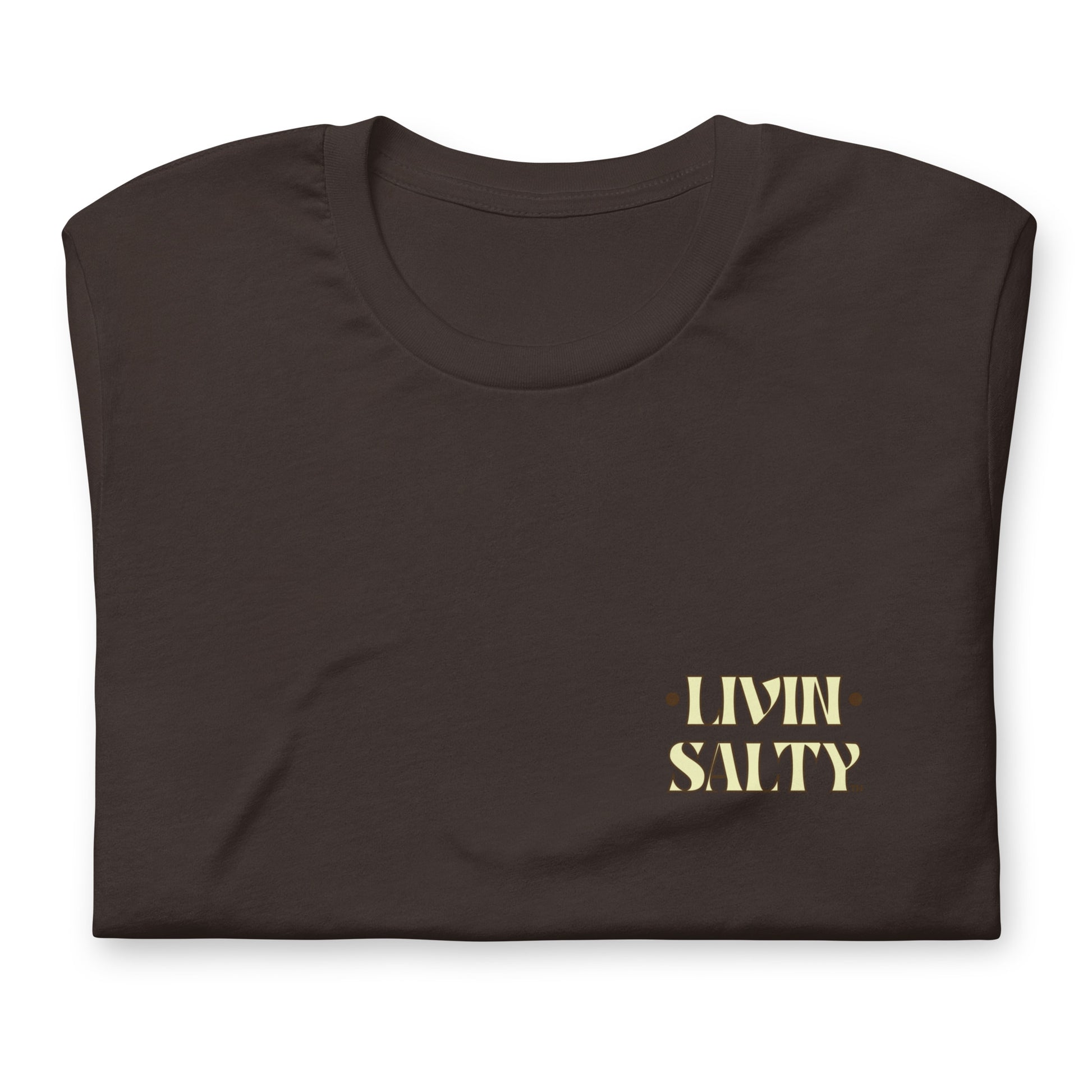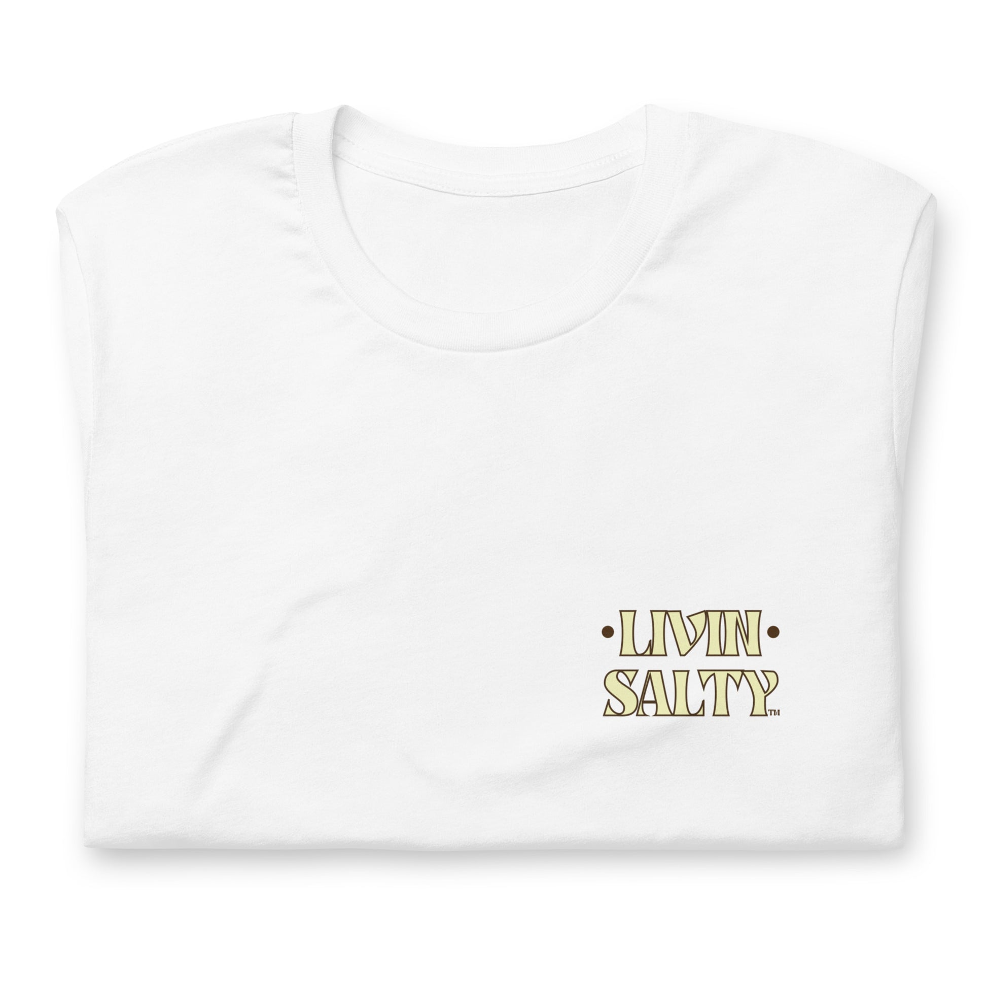 Featuring front left chest LIVIN SALTY logo, with rounded design on the back.