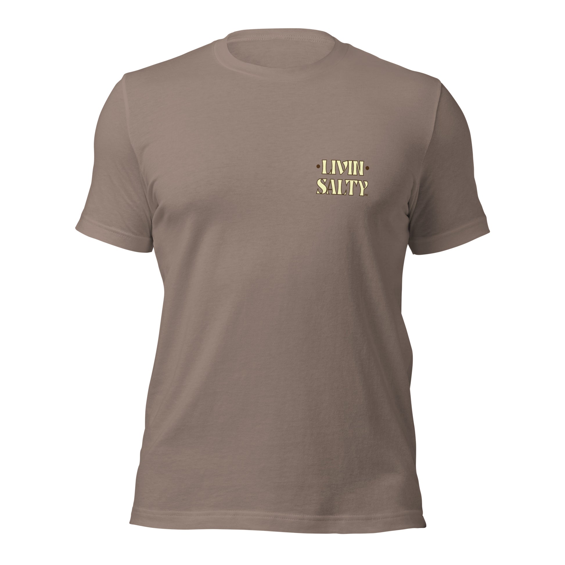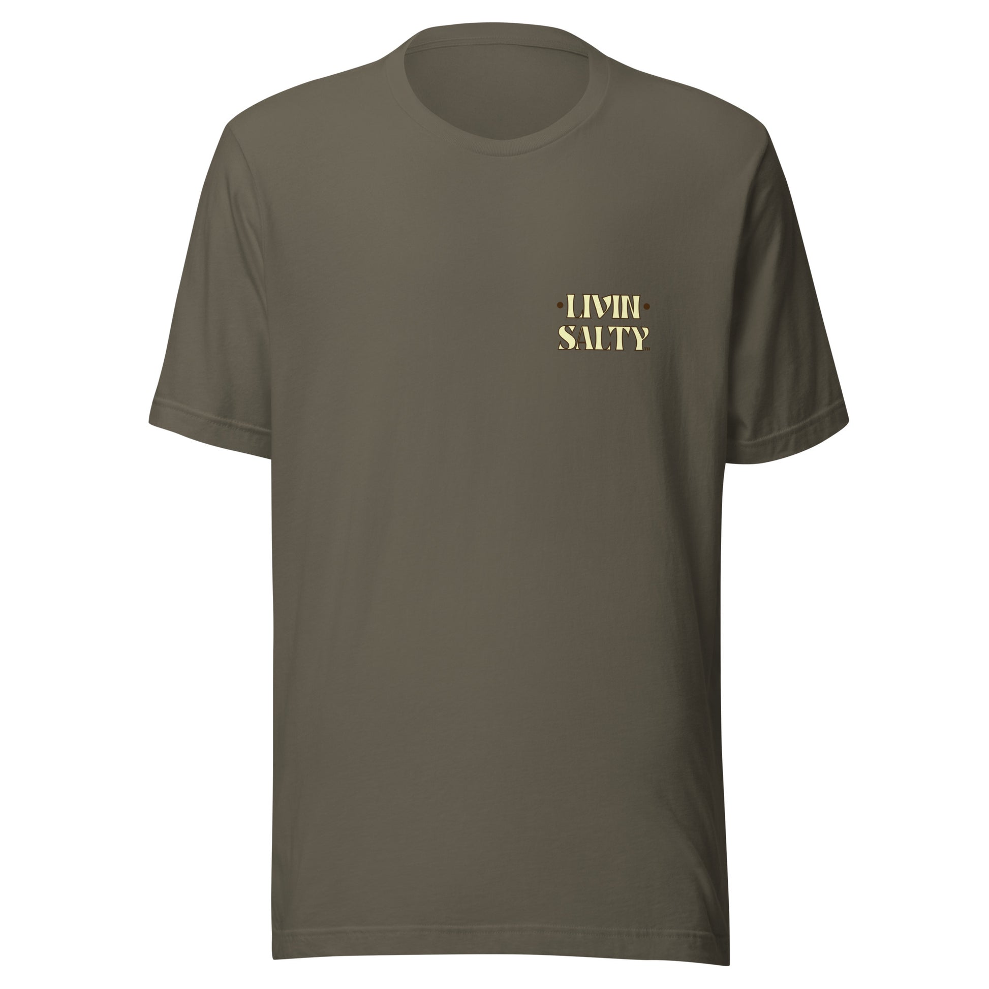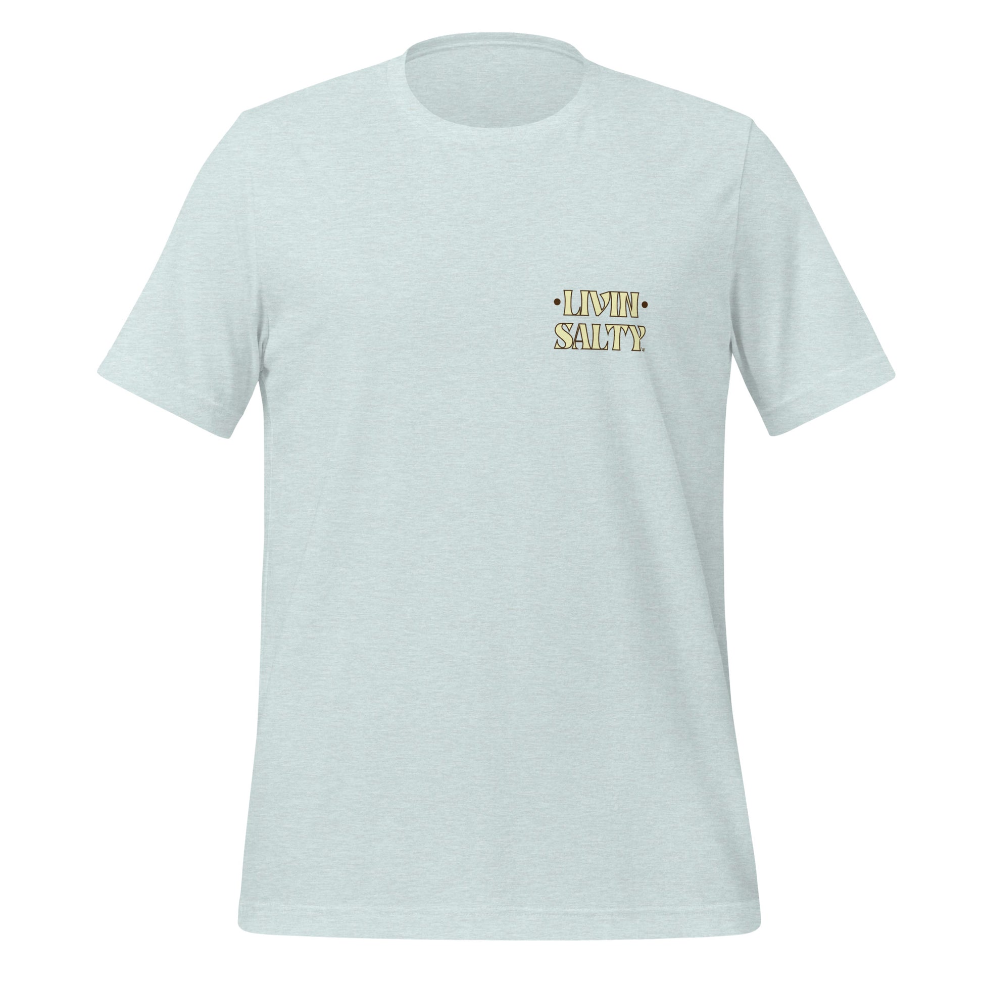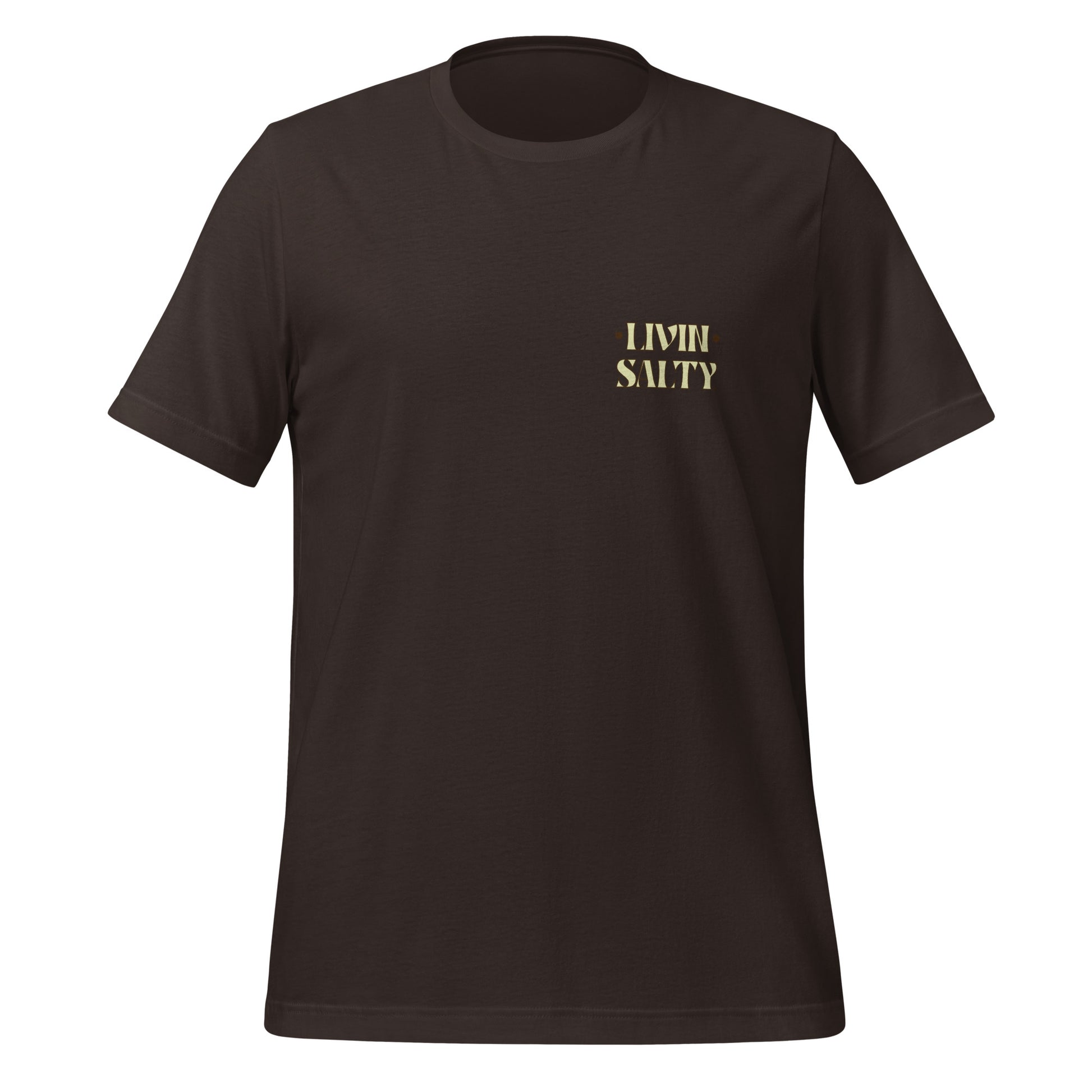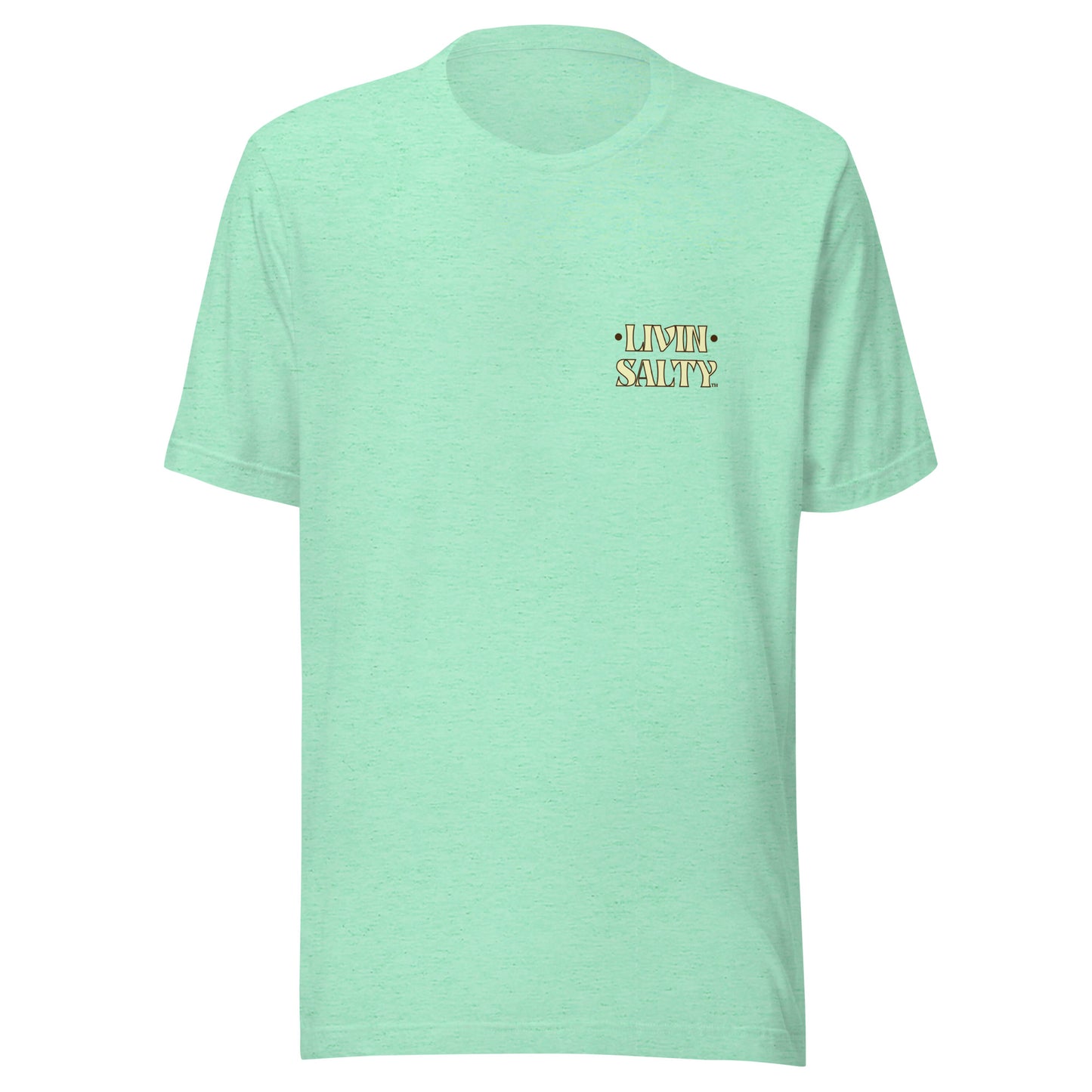 Featuring front left chest LIVIN SALTY logo, with rounded design on the back.