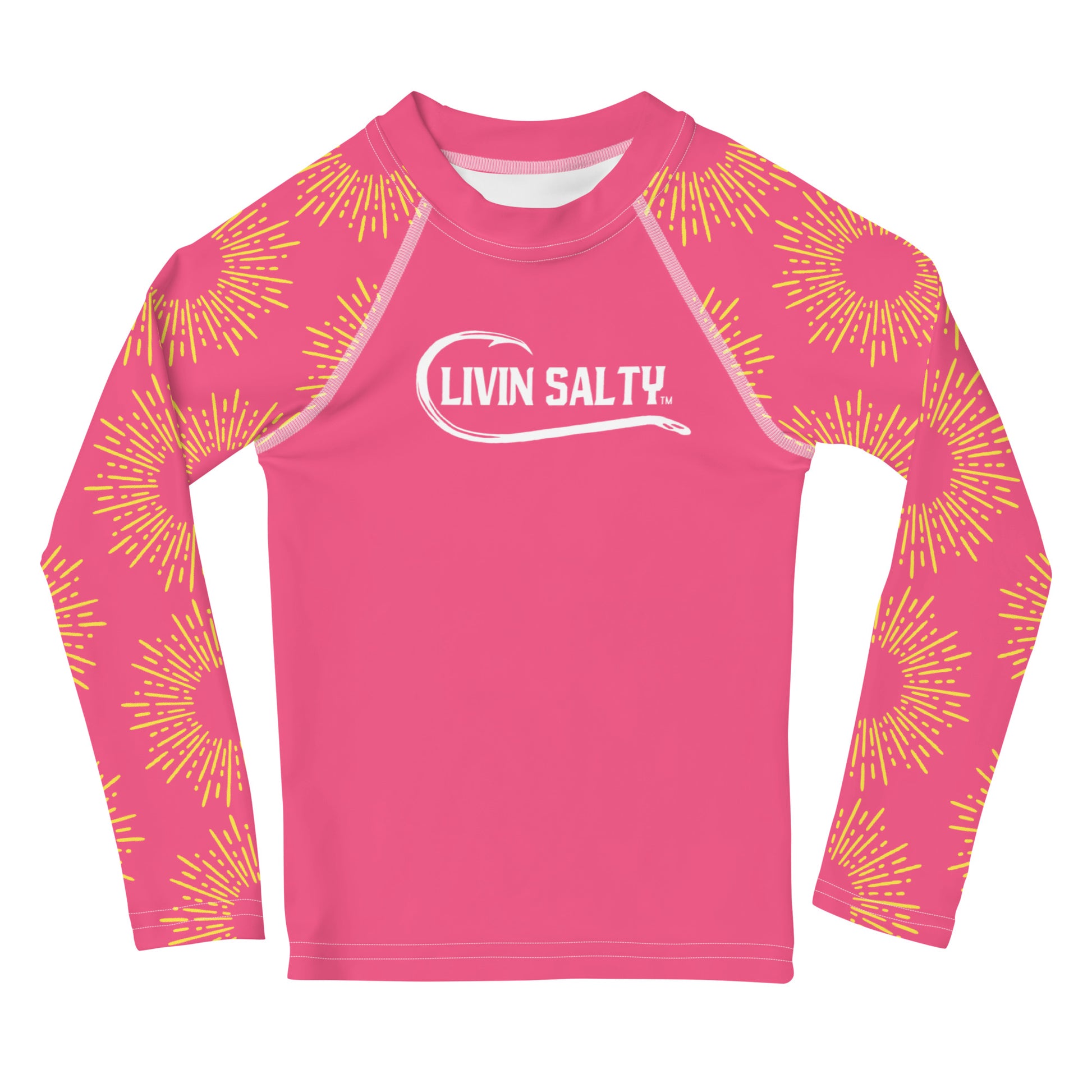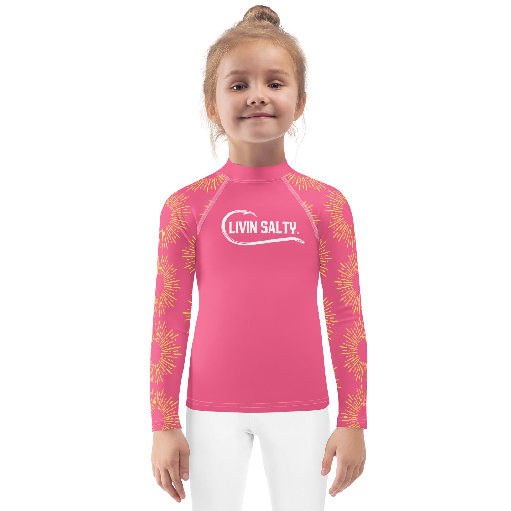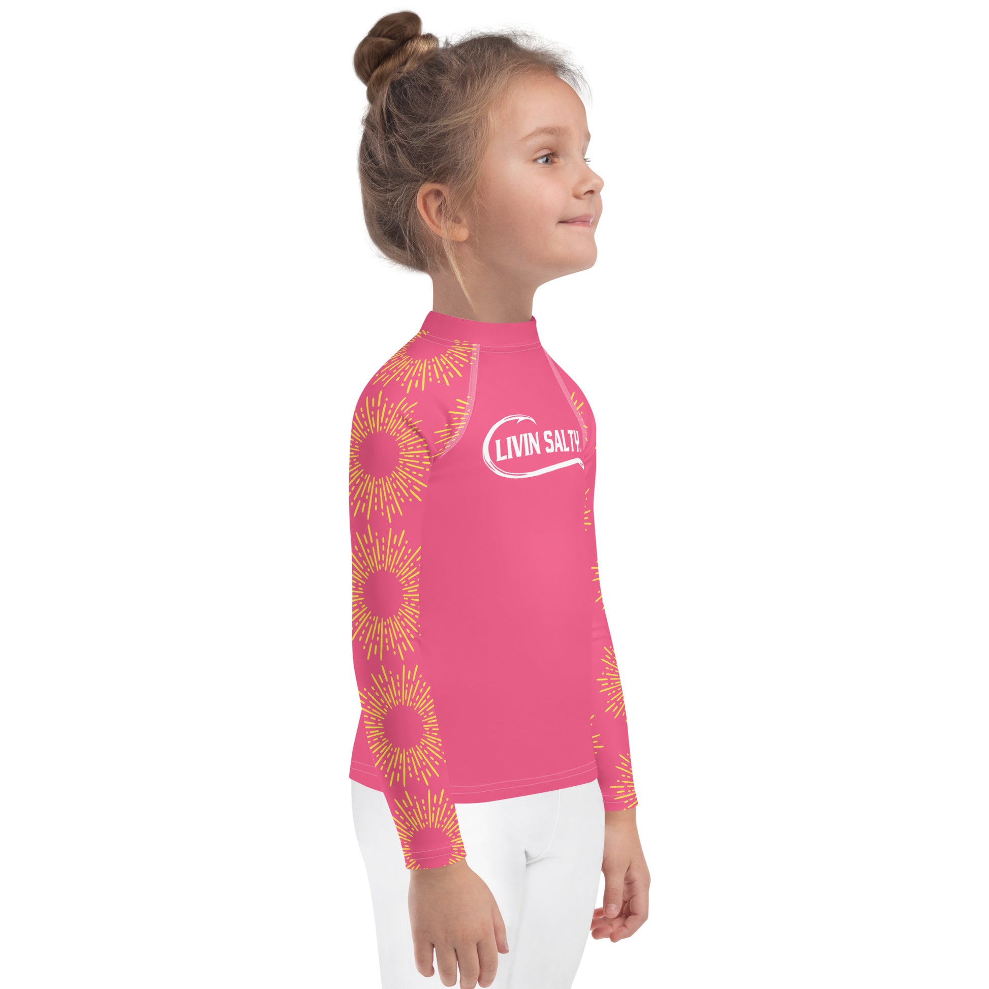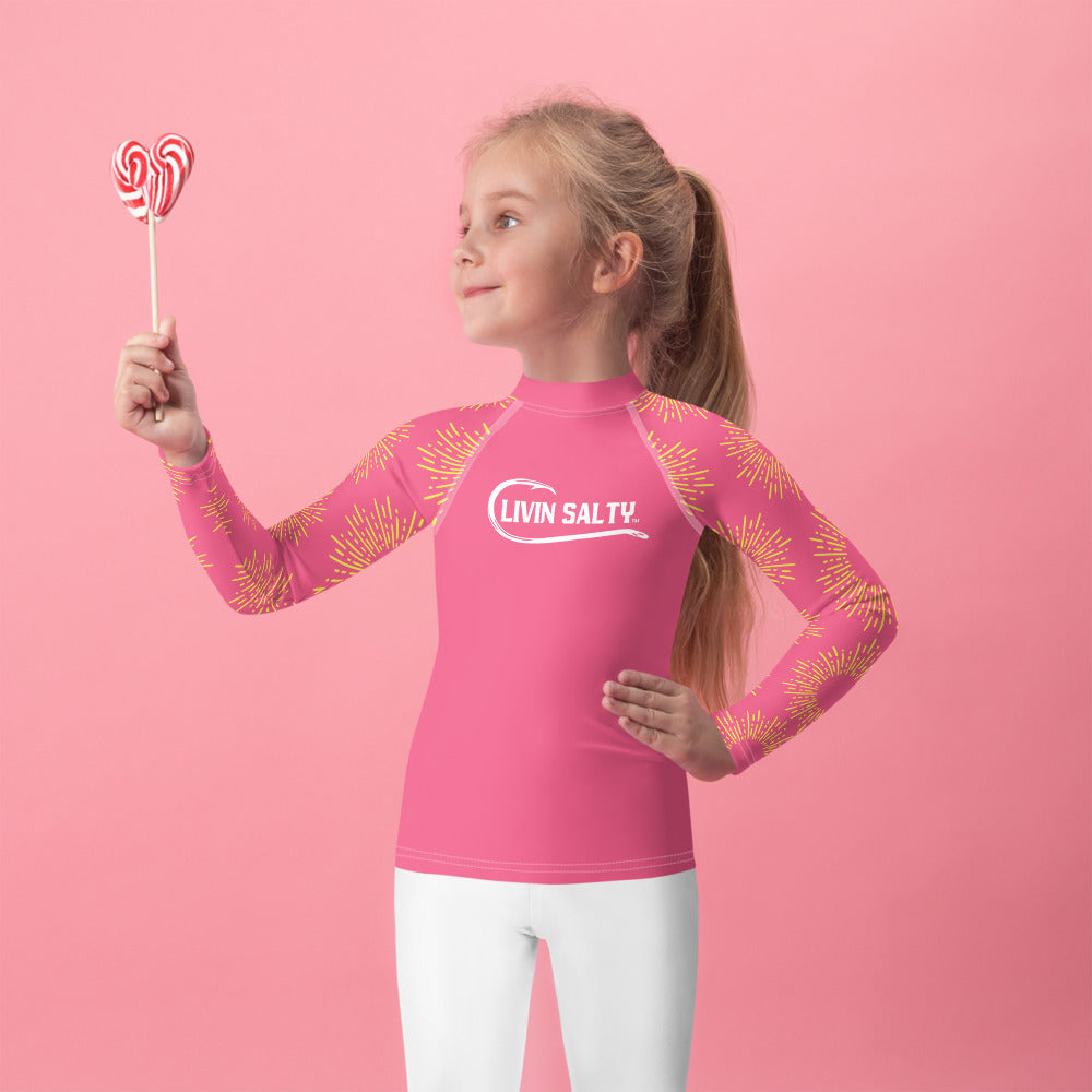 Featuring this pink long sleeve swimwear LIVIN SALTY rash guard.