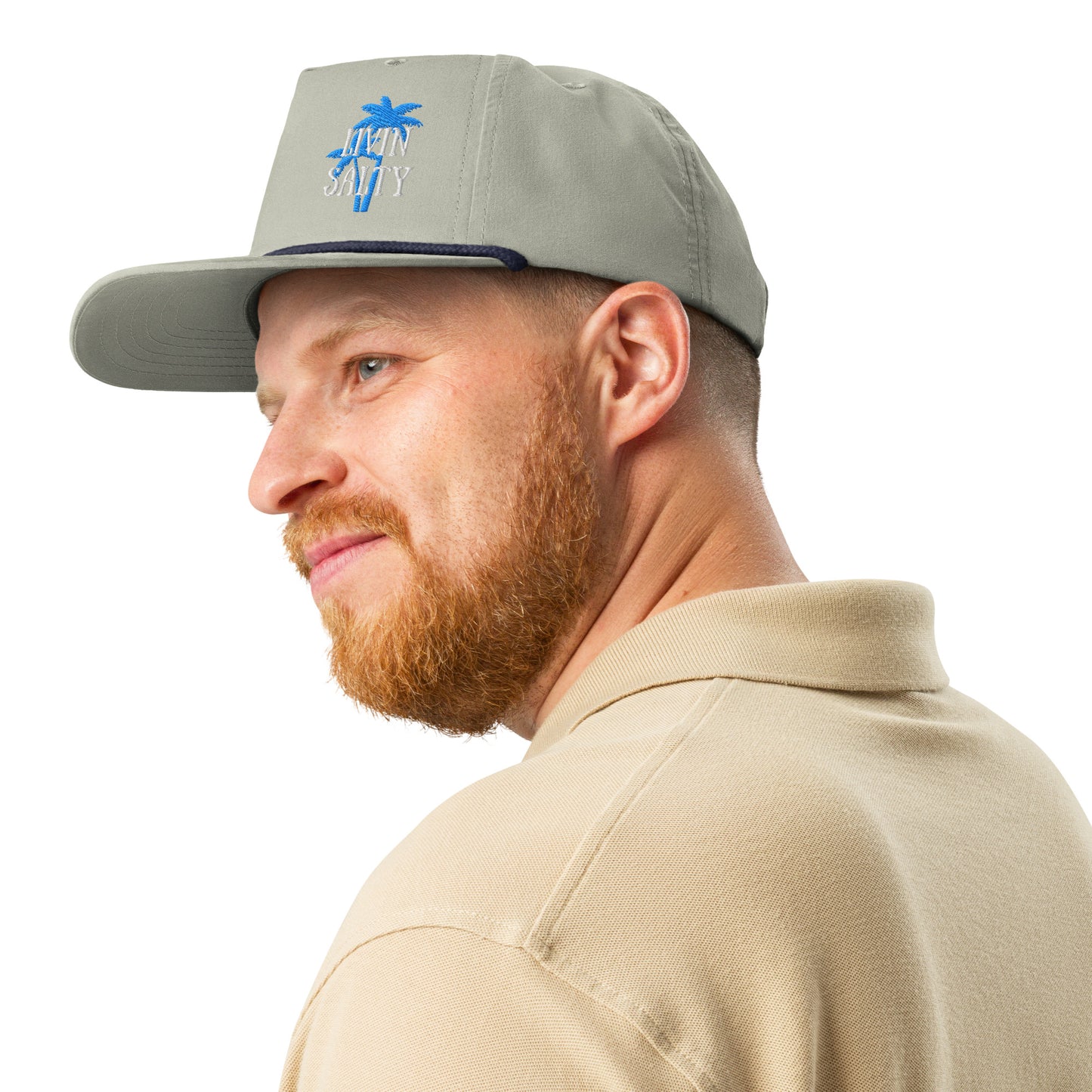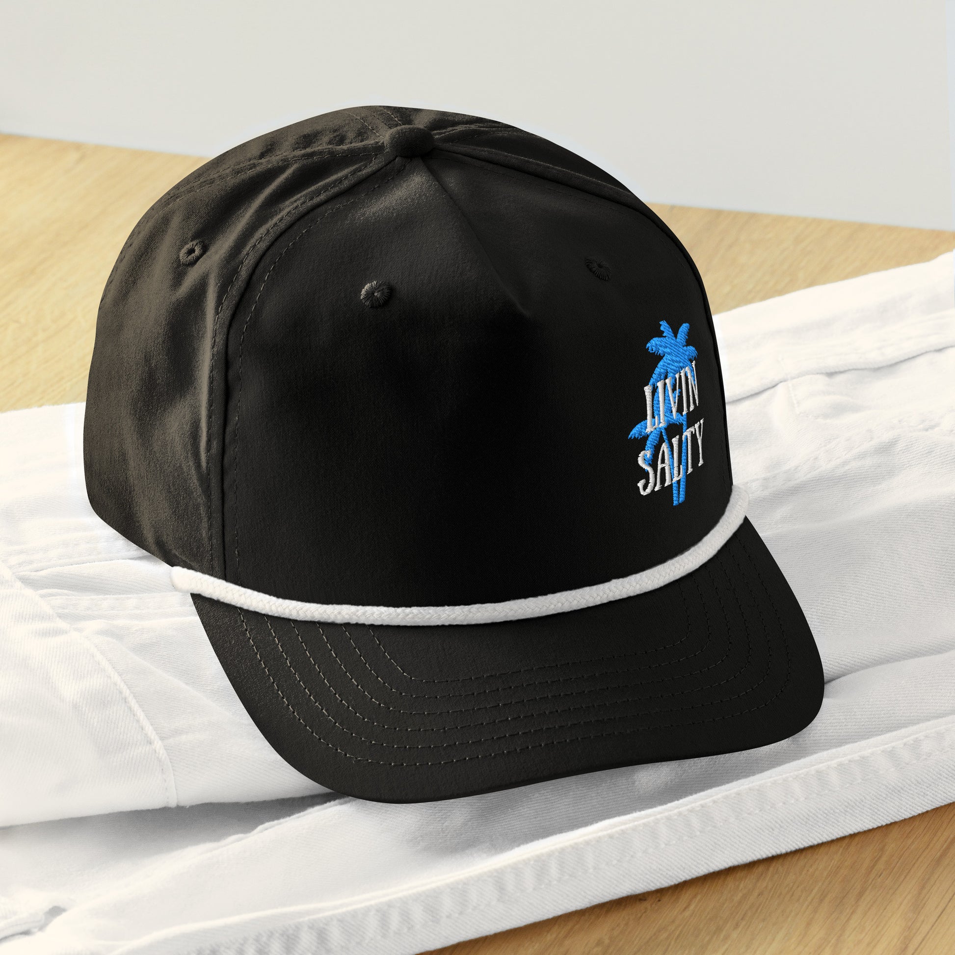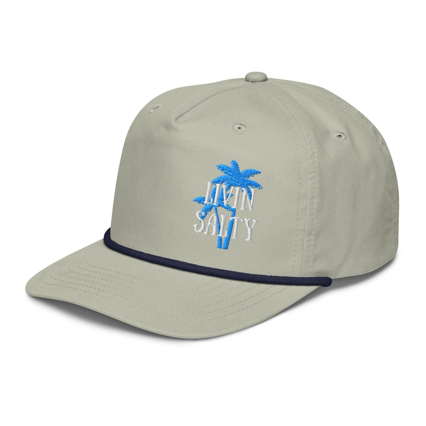Featuring the embroidered palm tree with LIVIN SALTY on the left side of hat.