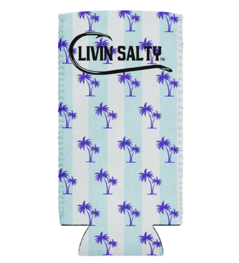 Featuring this striped blue palm tree design, with black Livin Salty logo.