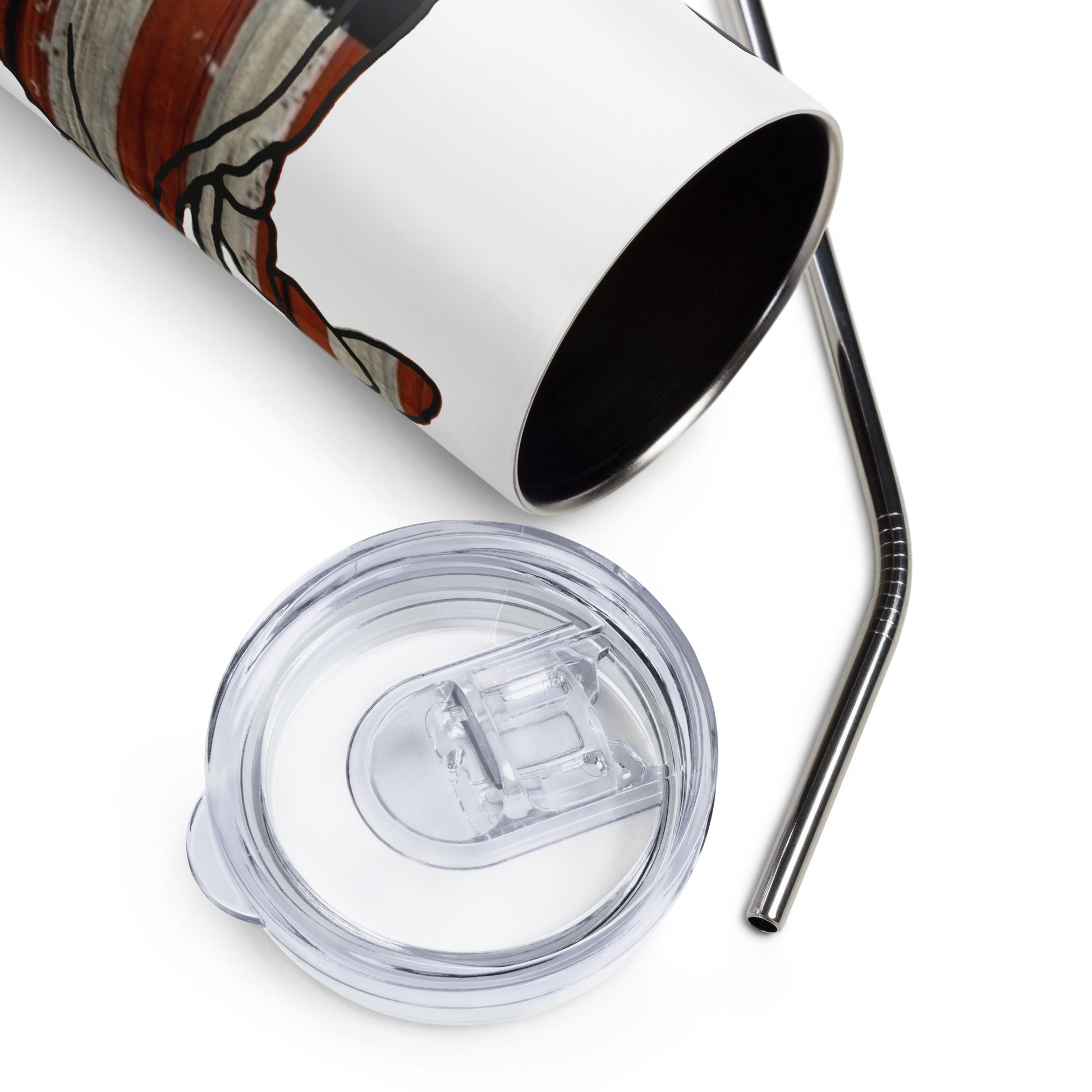 Enjoy hot or cold drinks on the go with this stylish stainless steel tumbler! This reusable tumbler with a metal straw is a perfect combo for hot or cold drinks at any time of the day.