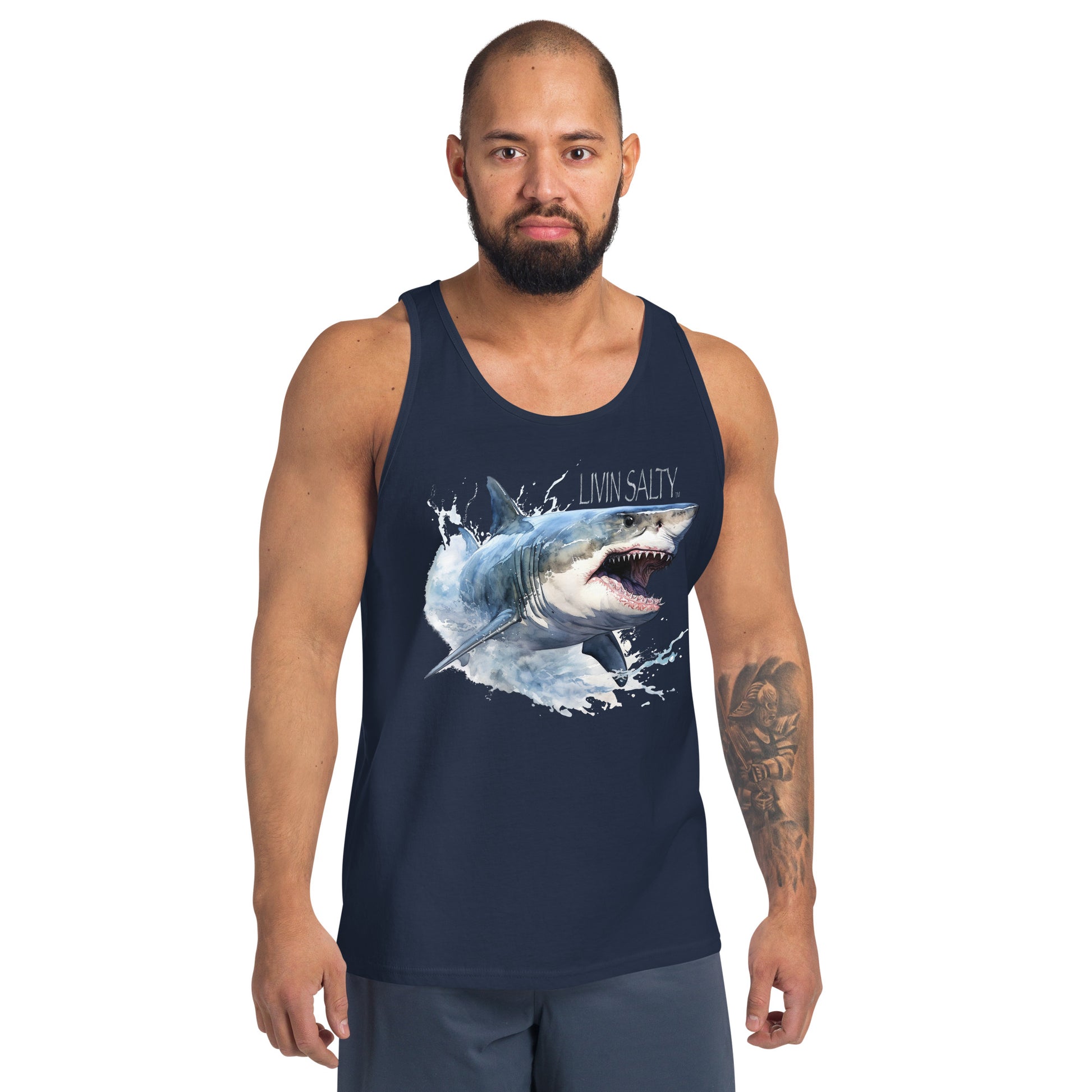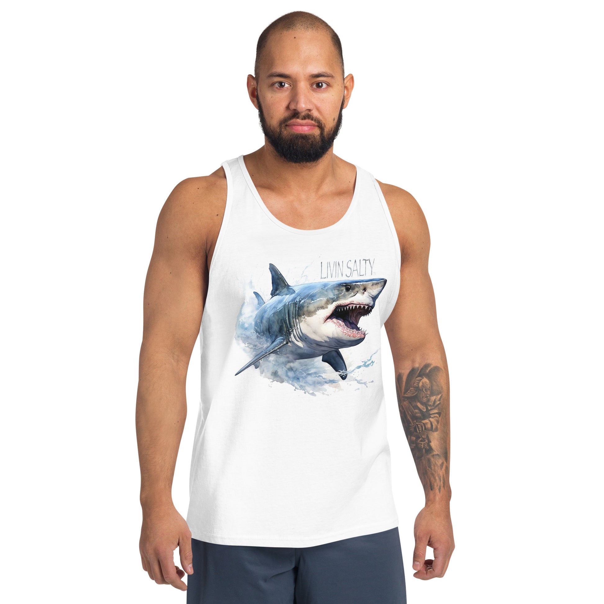 LIVIN SALTY Great White Shark Men's Tank Top