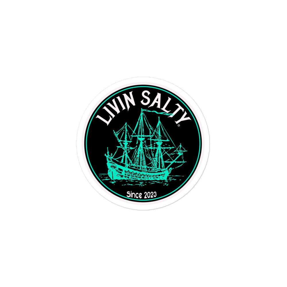 Featuring this LIVIN SALTY sticker with a light blue and white color.
