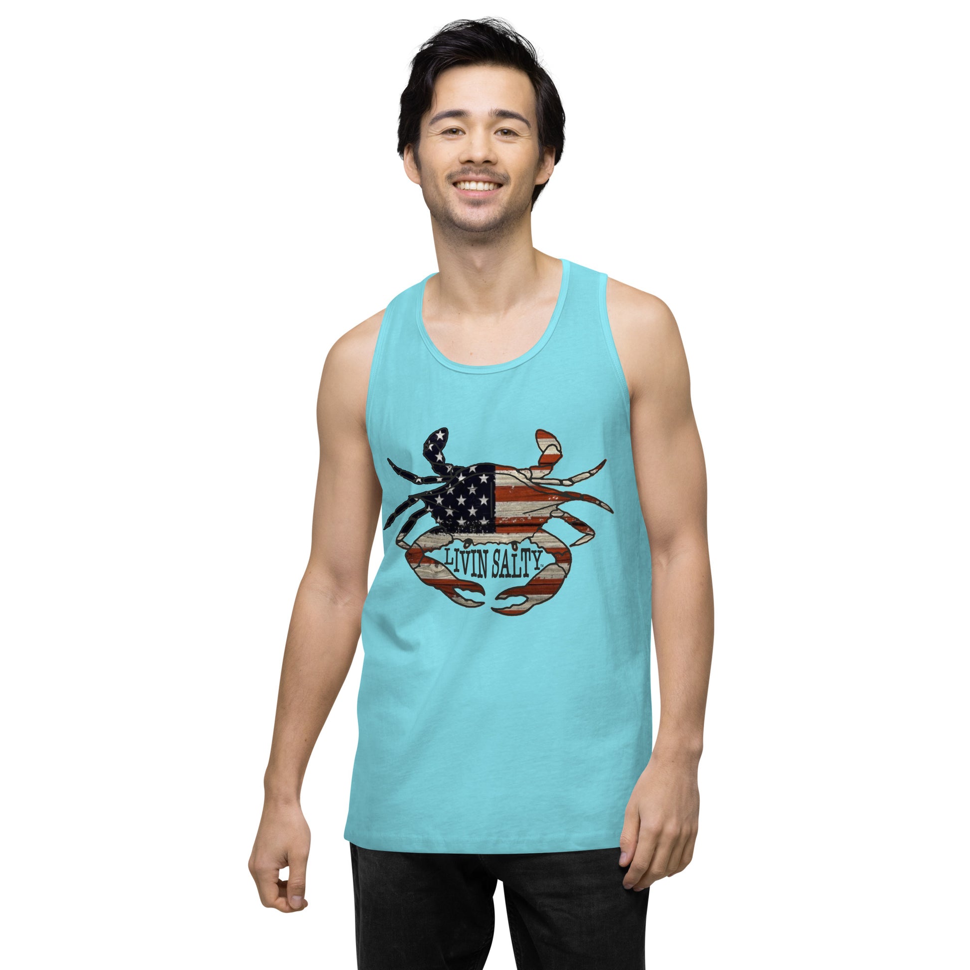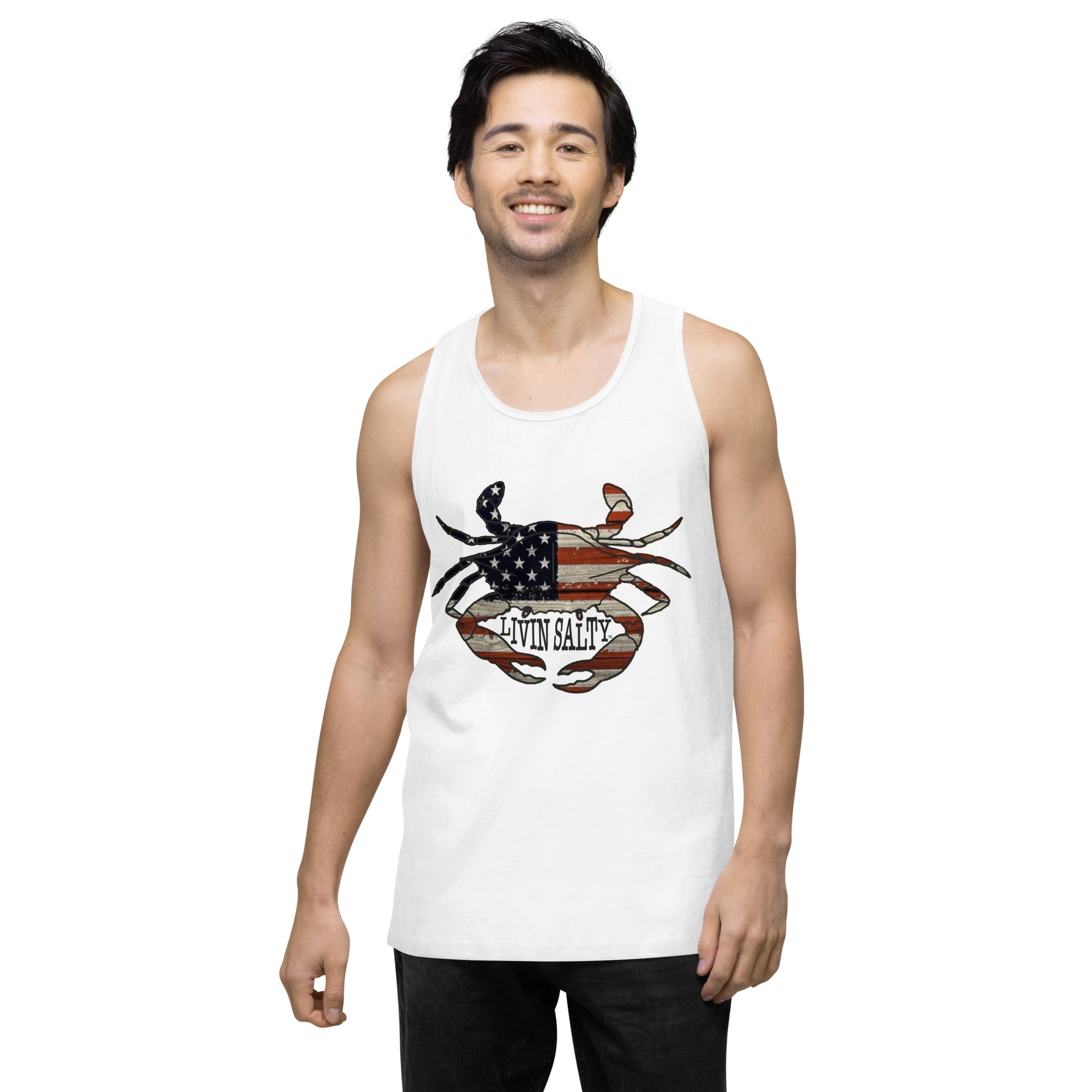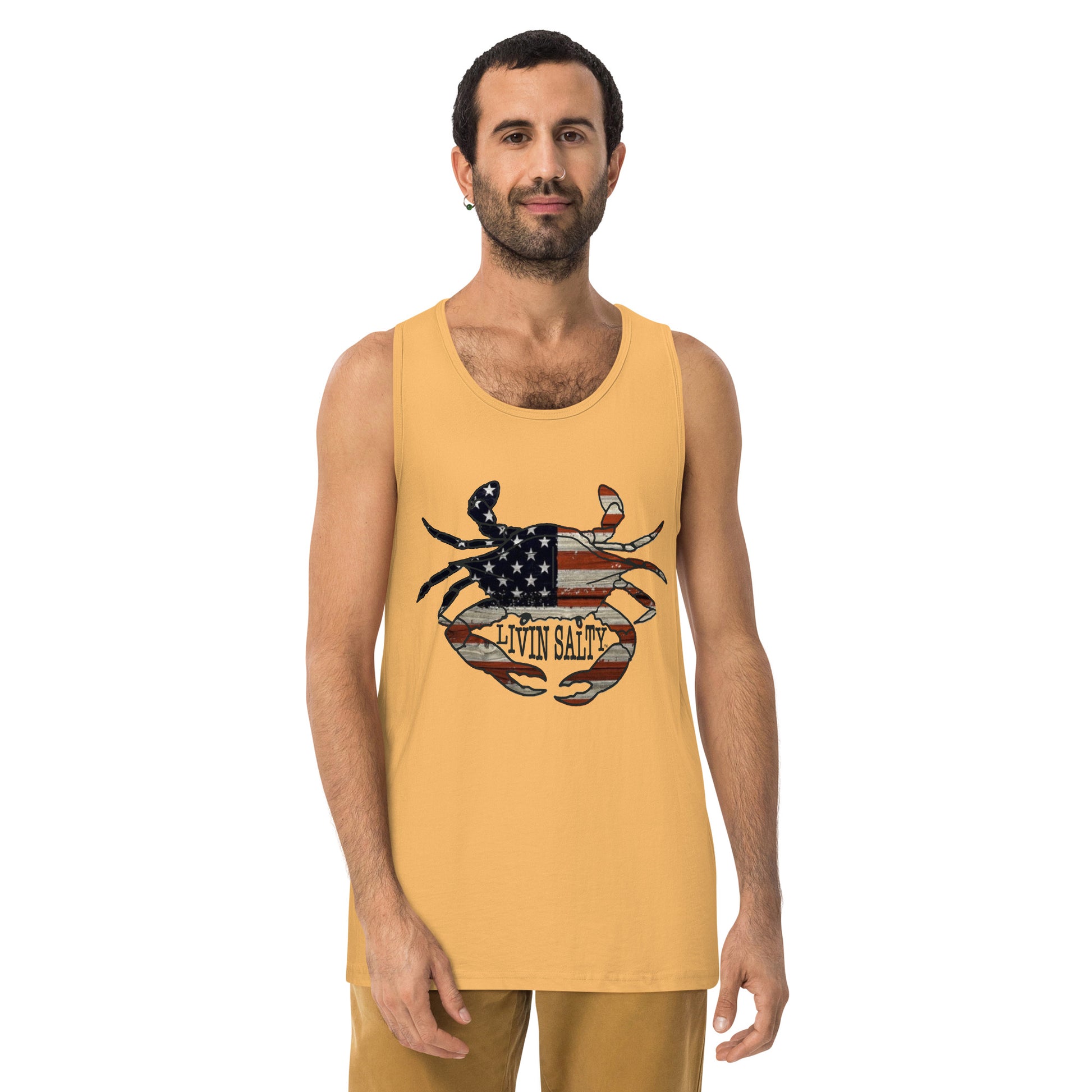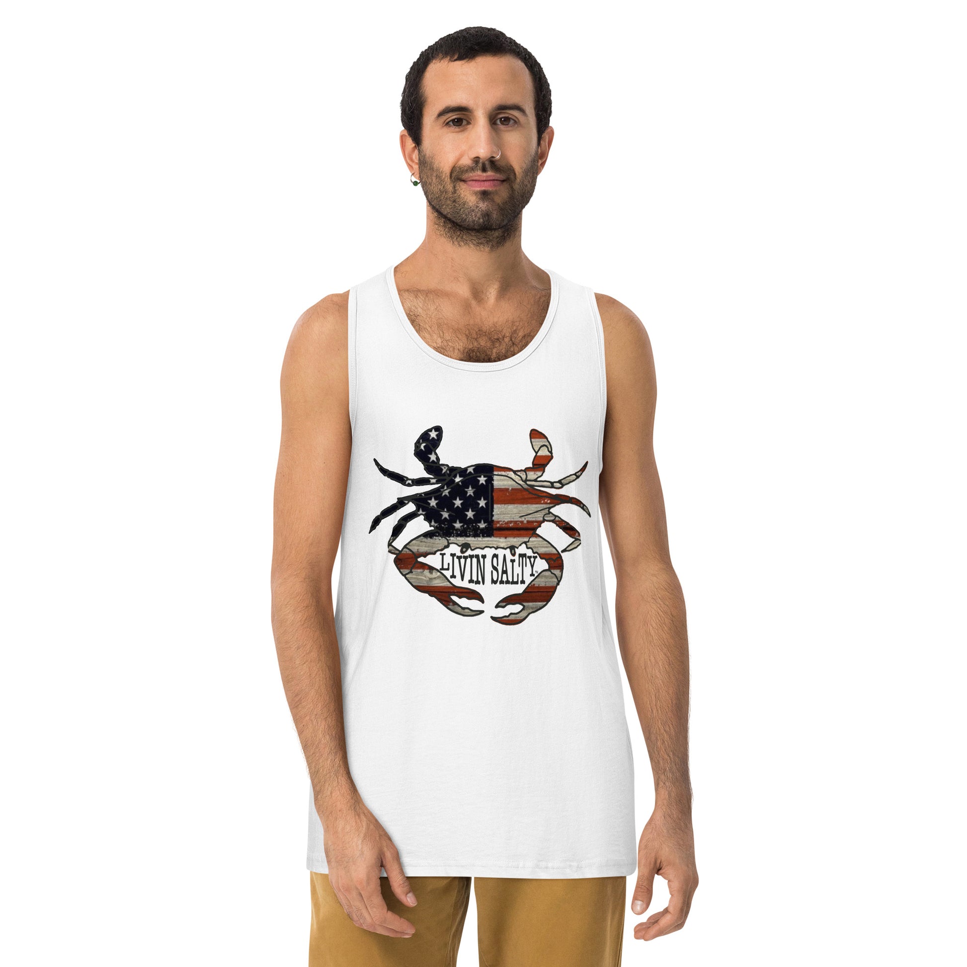 It’s always a good decision to invest in premium-quality basics that’ll look good and last long. The men’s premium tank top is exceptionally soft and smooth and made of durable materials. Features front only print with the LIVIN SALTY crab design.