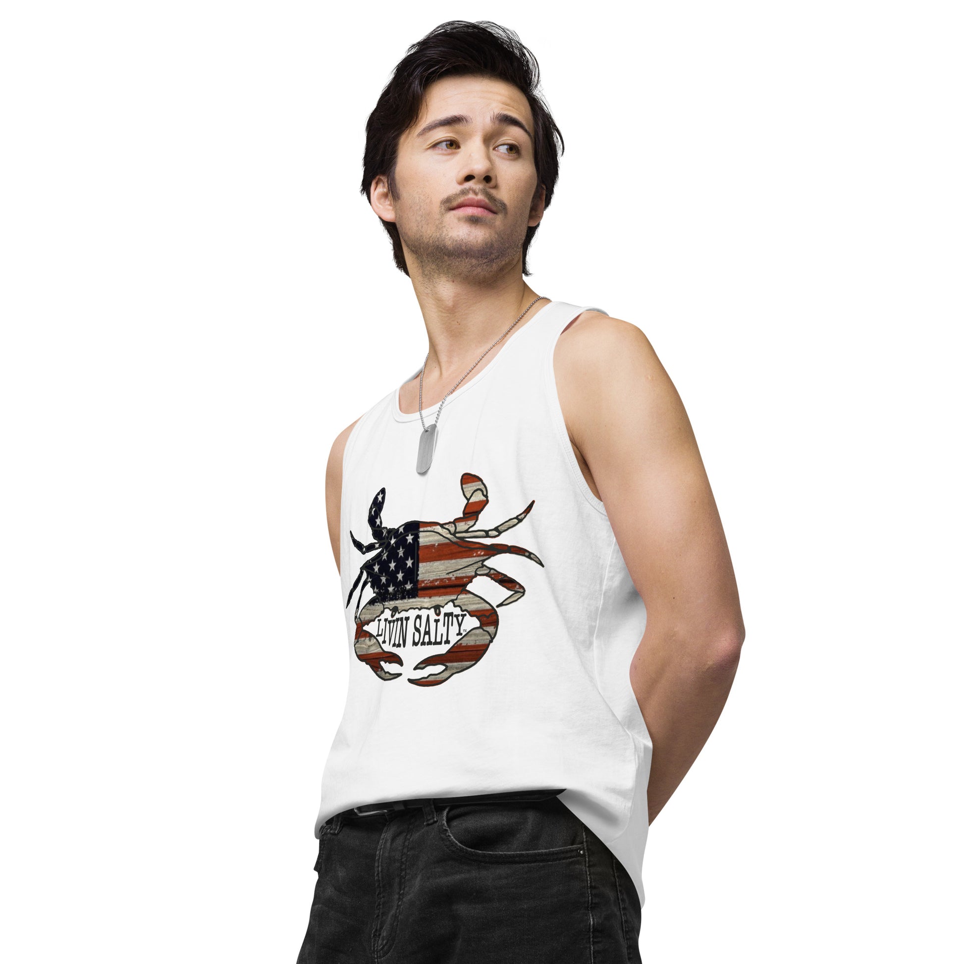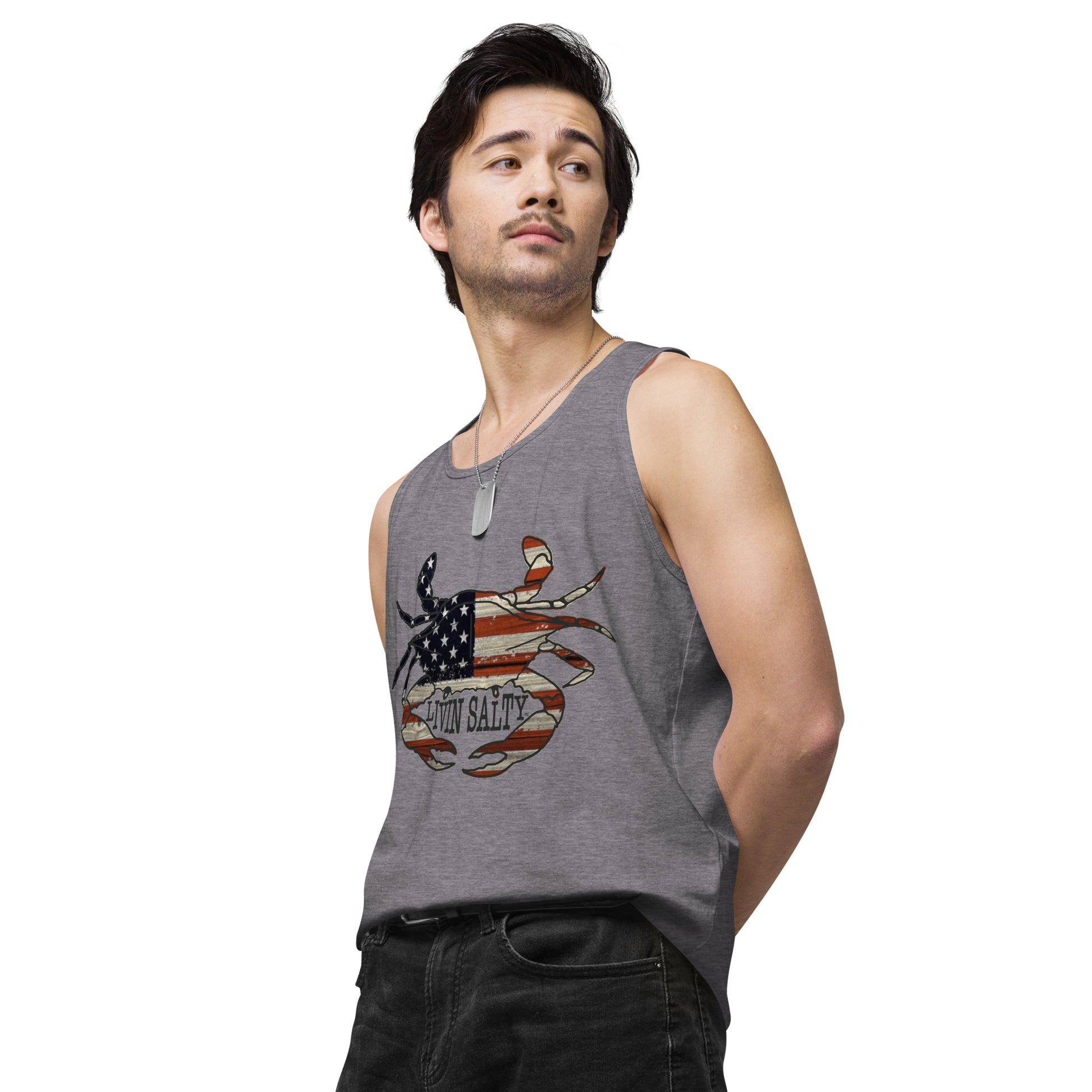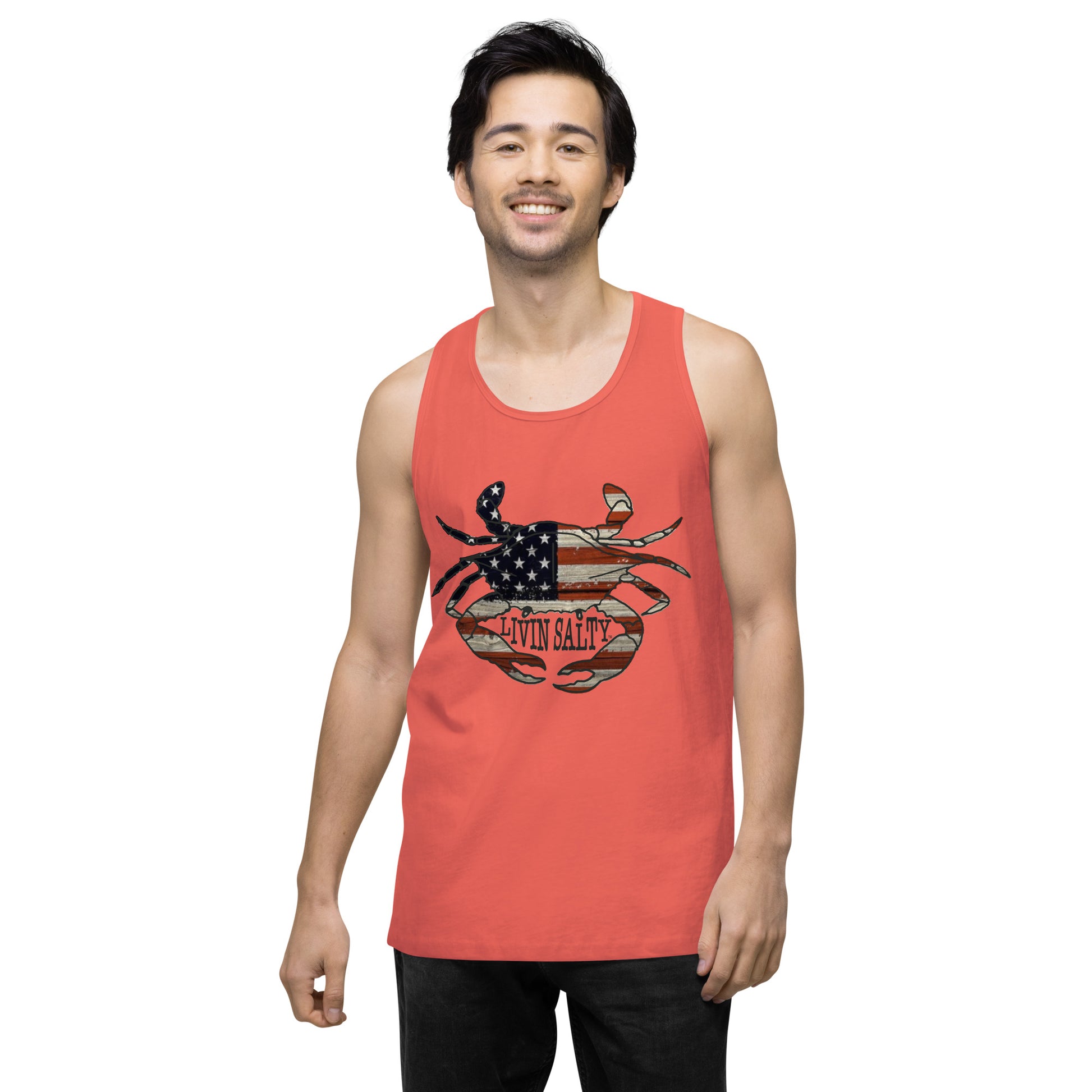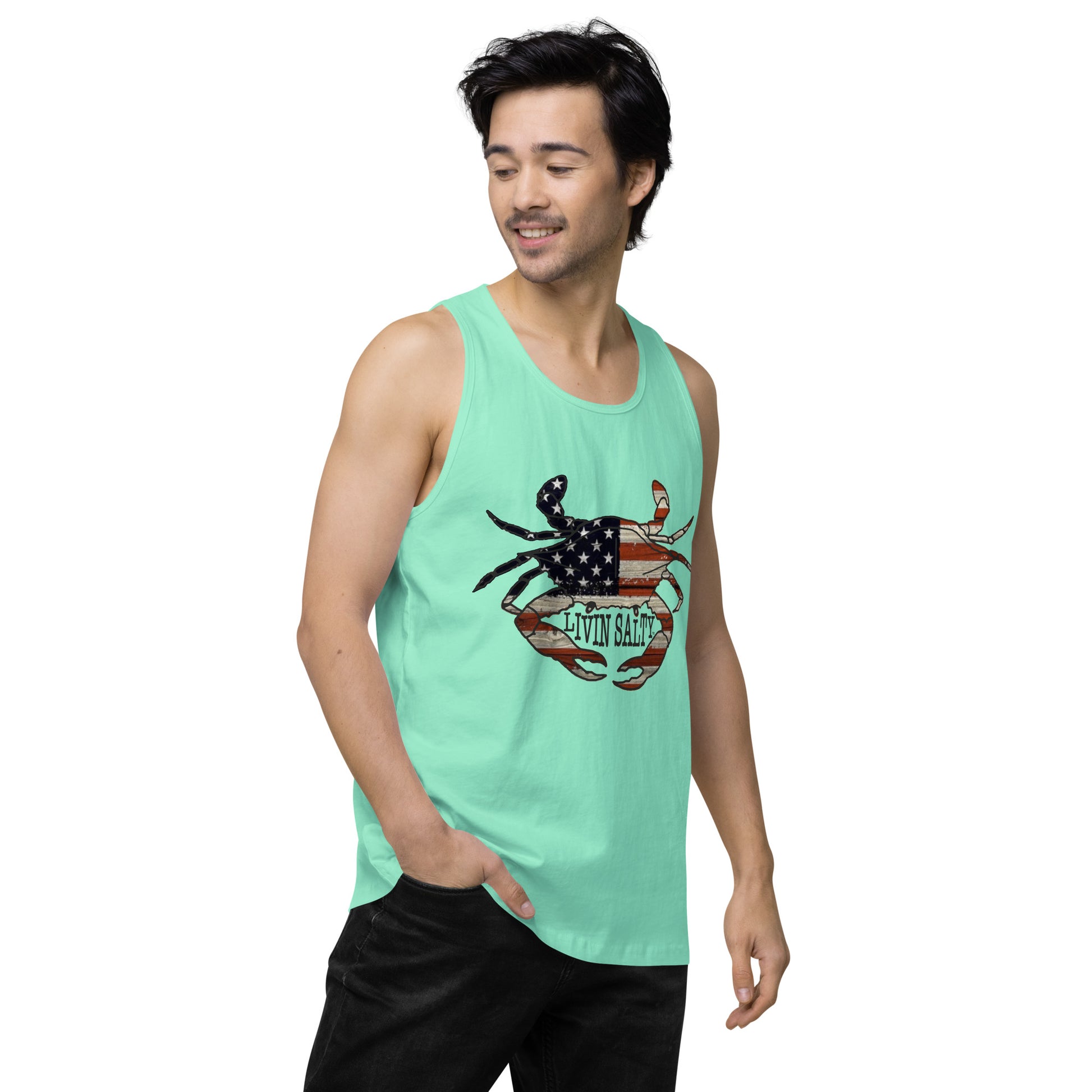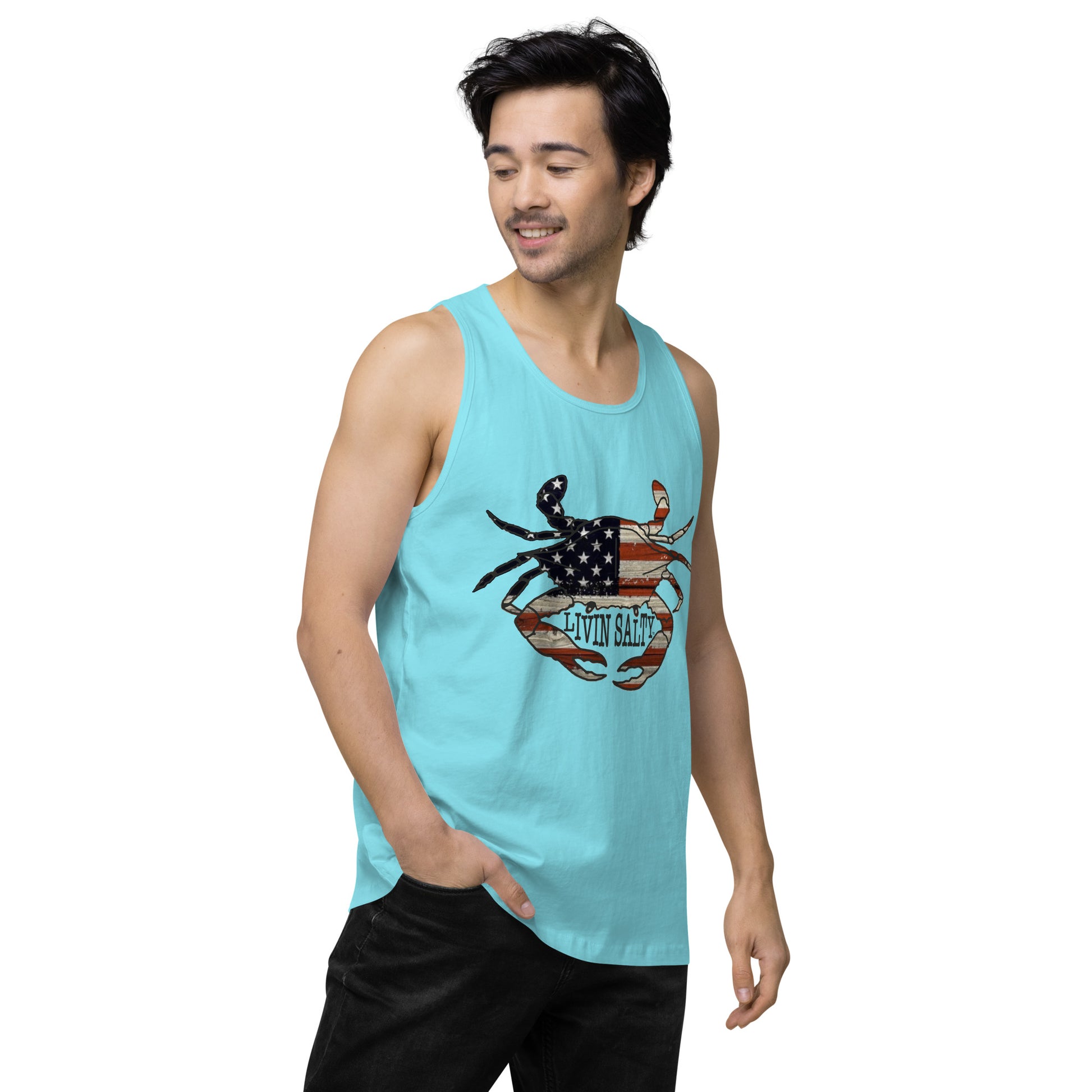 It’s always a good decision to invest in premium-quality basics that’ll look good and last long. The men’s premium tank top is exceptionally soft and smooth and made of durable materials. Features front only print with the LIVIN SALTY crab design.
