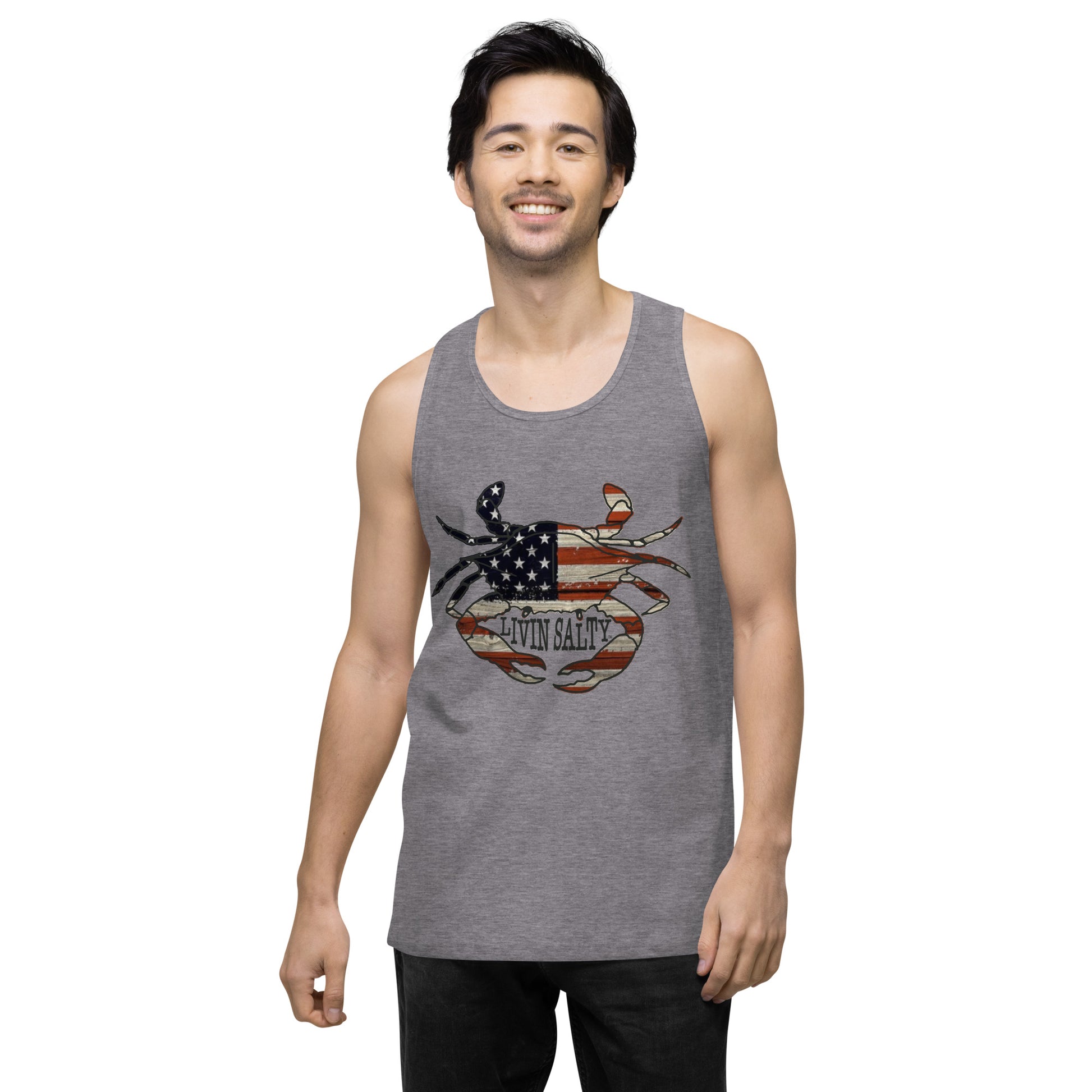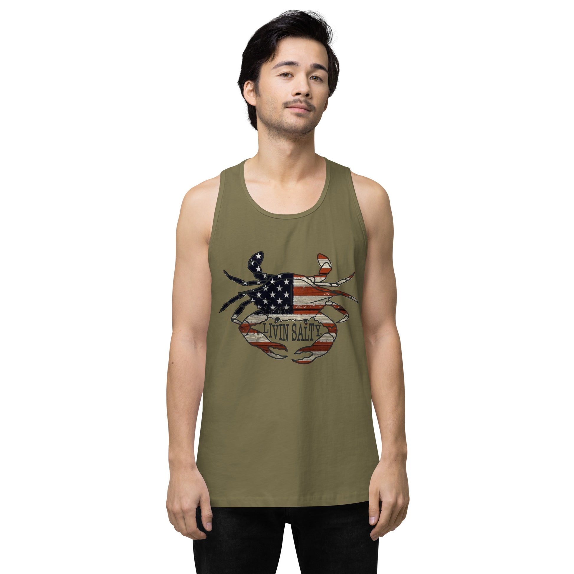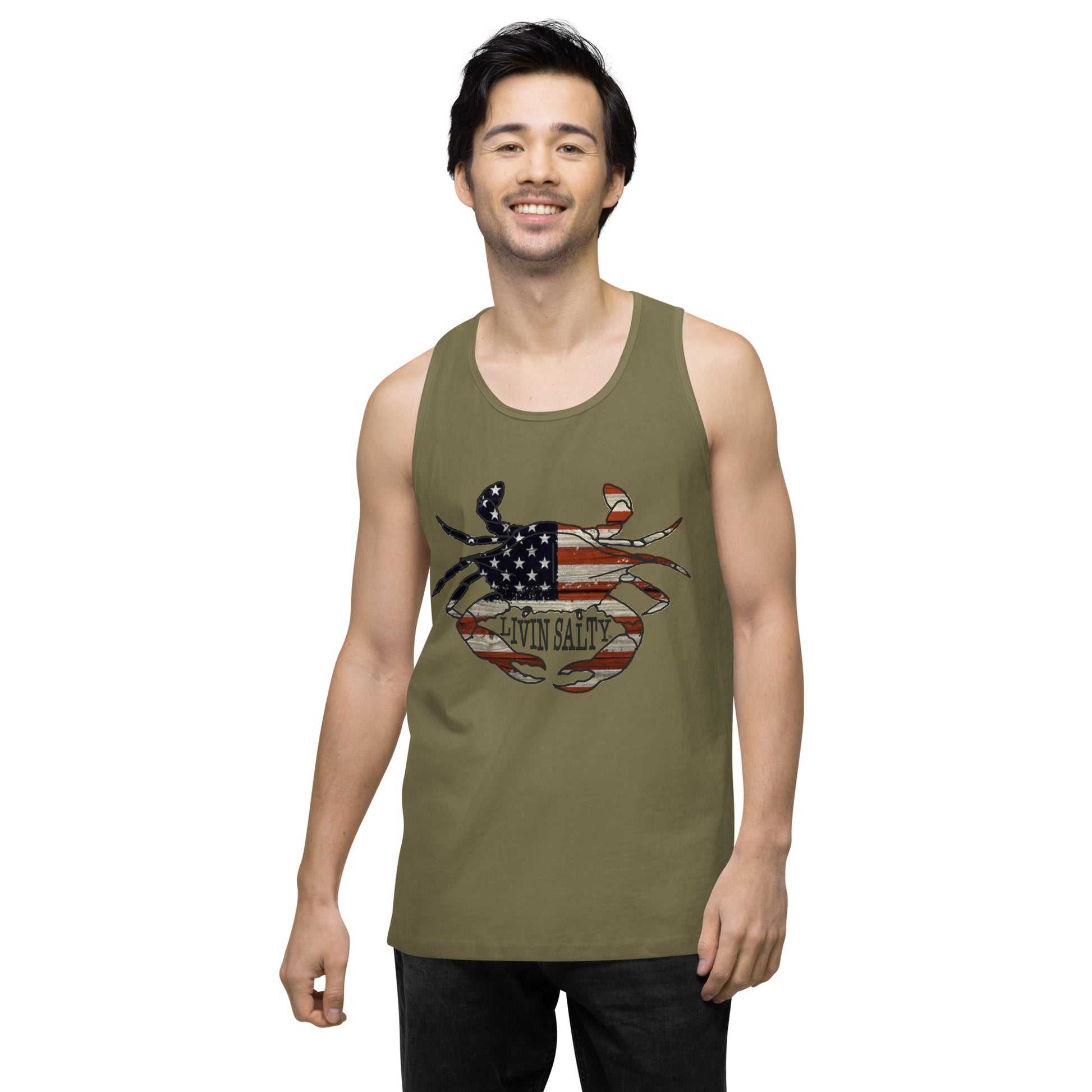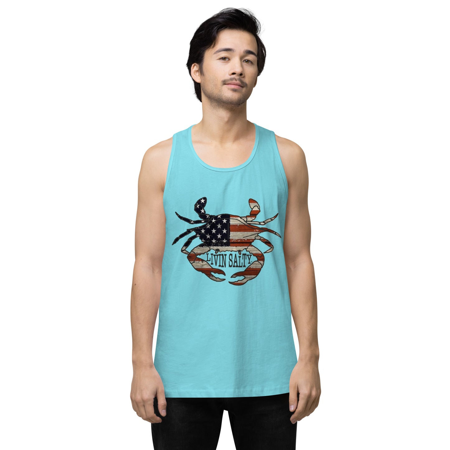 It’s always a good decision to invest in premium-quality basics that’ll look good and last long. The men’s premium tank top is exceptionally soft and smooth and made of durable materials. Features front only print with the LIVIN SALTY crab design.