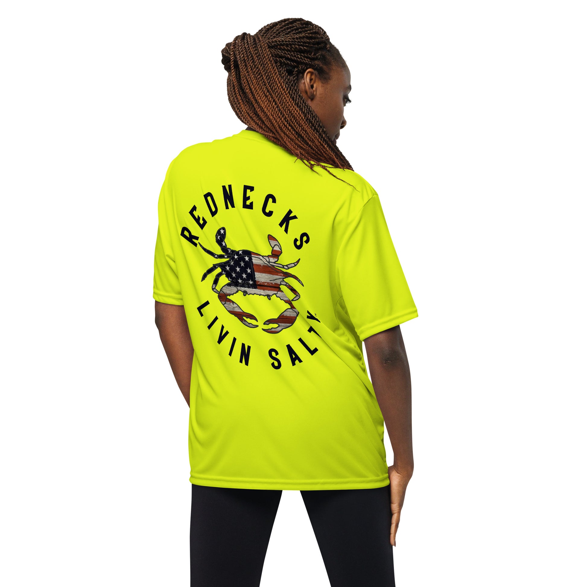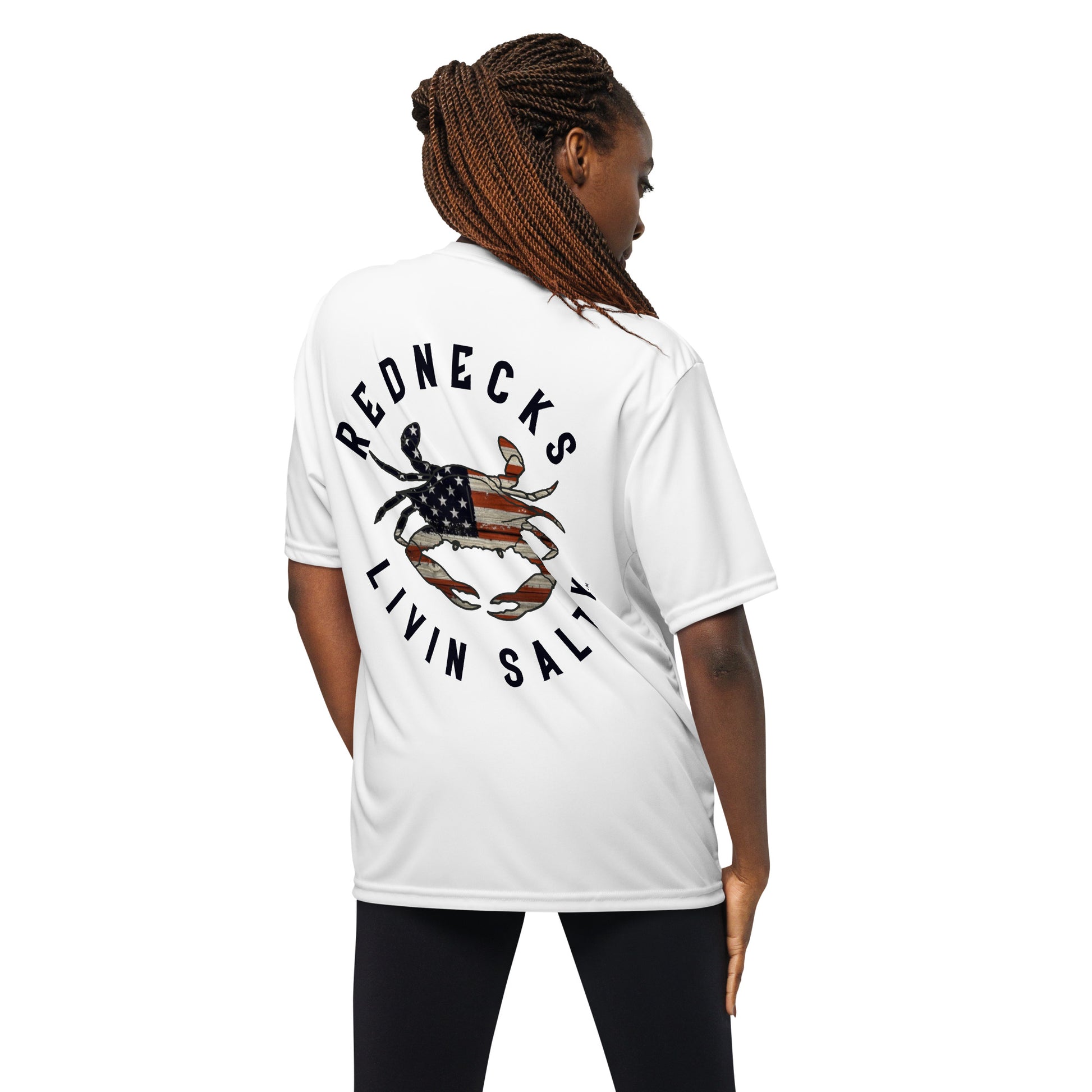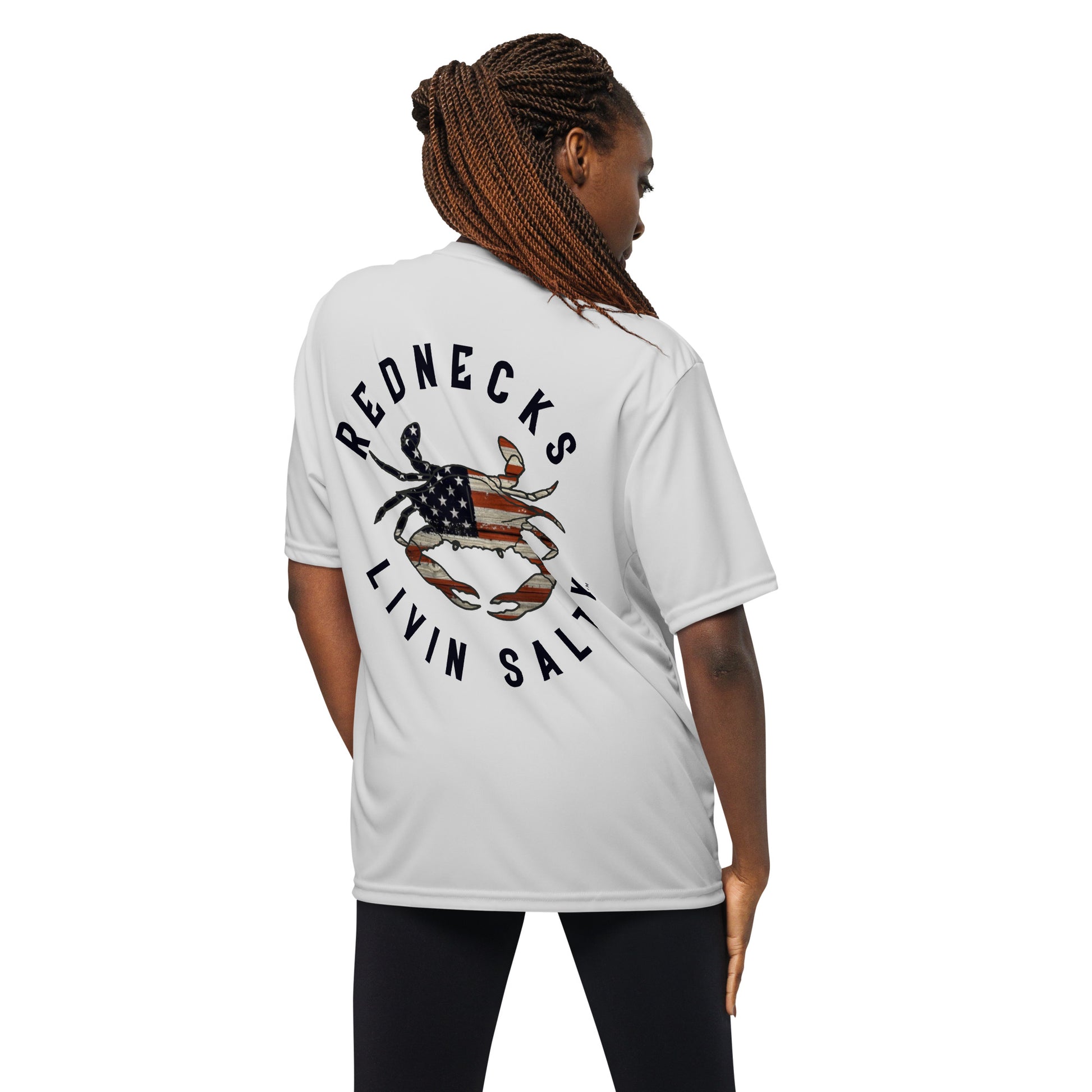 Stay cool, dry, and confident even during the most intense activities in this unisex performance crew neck t-shirt. Made from premium, moisture-wicking fabric with odor resistance, stain release, and UV protection, this shirt’s perfect for going to the gym, playing sports, hiking, or any other activity.