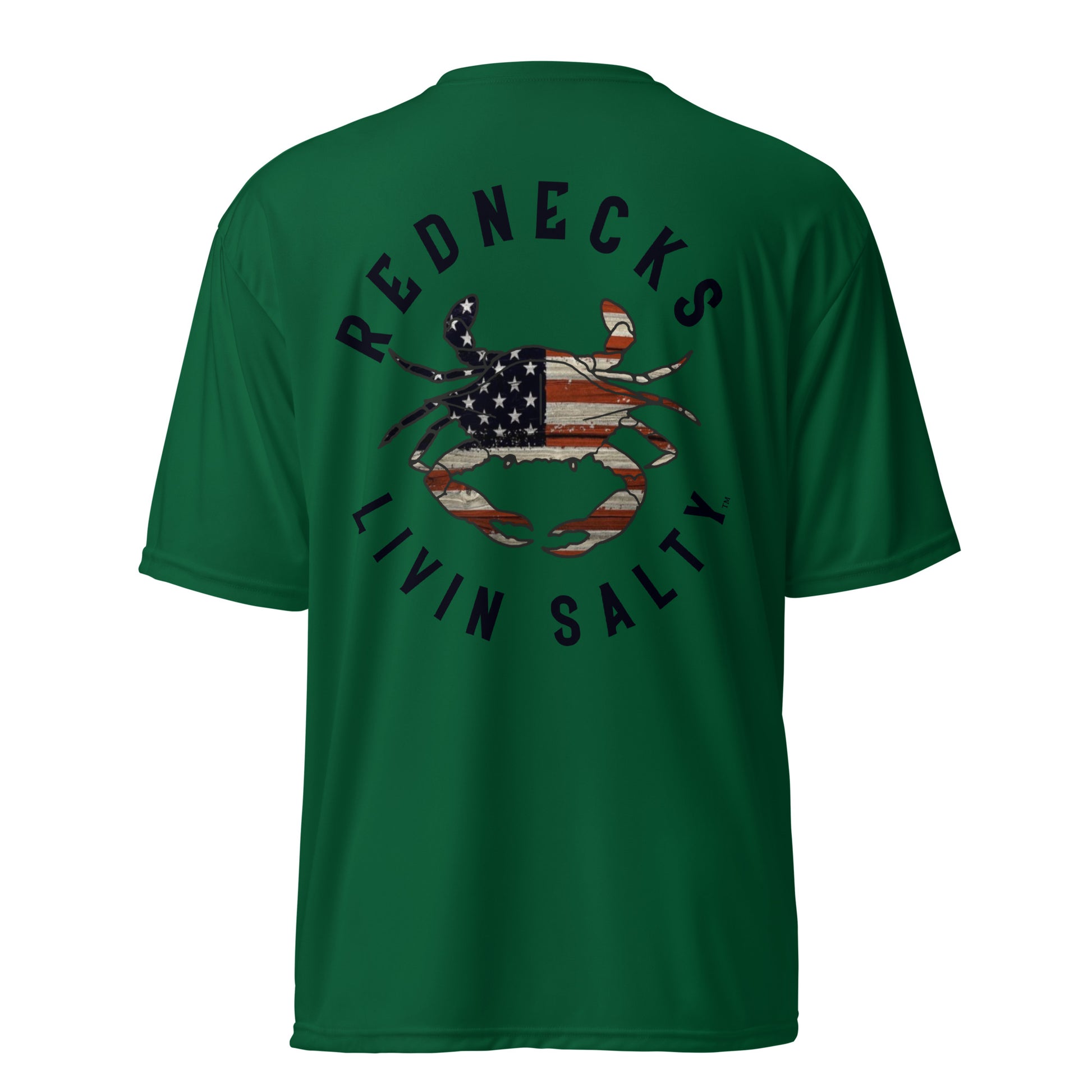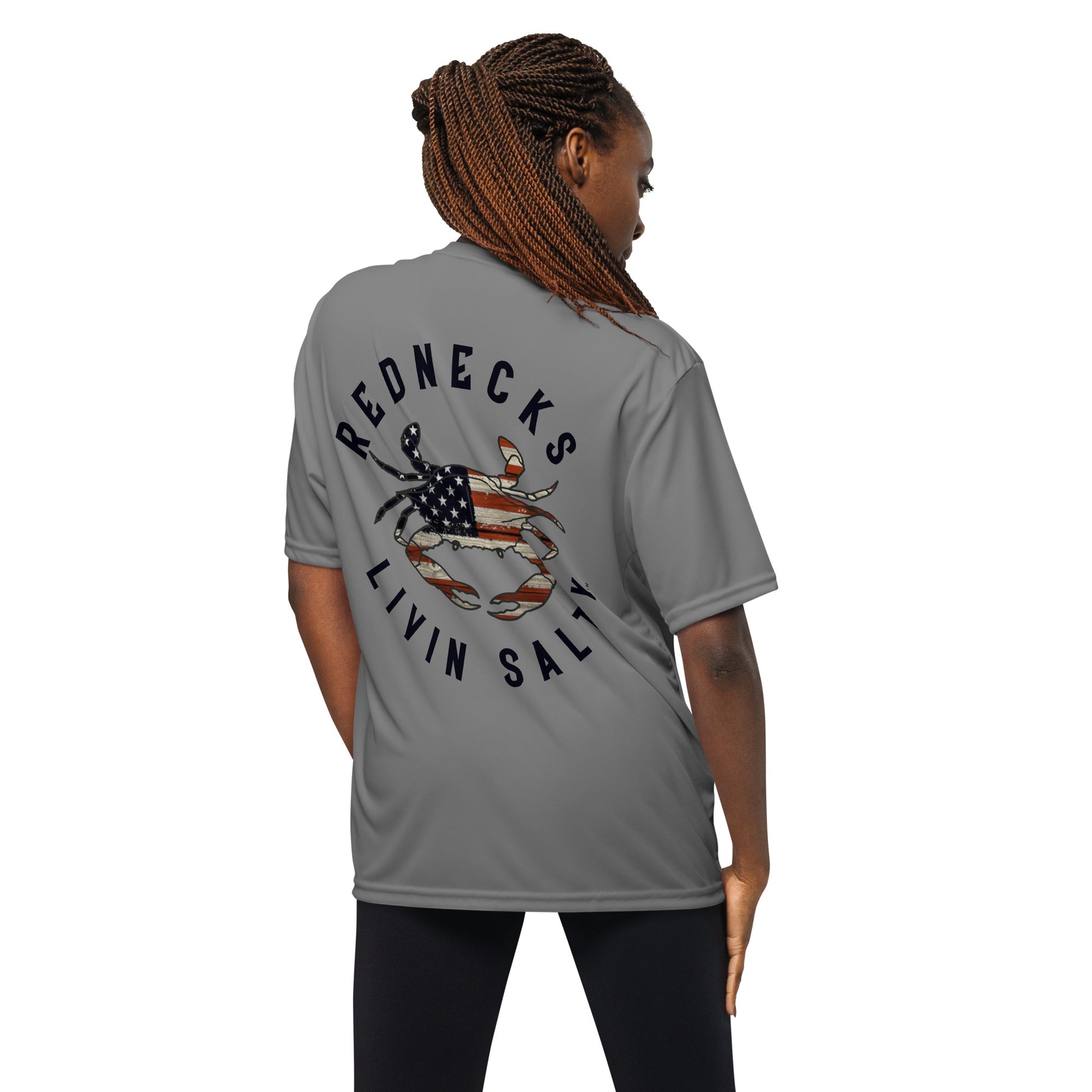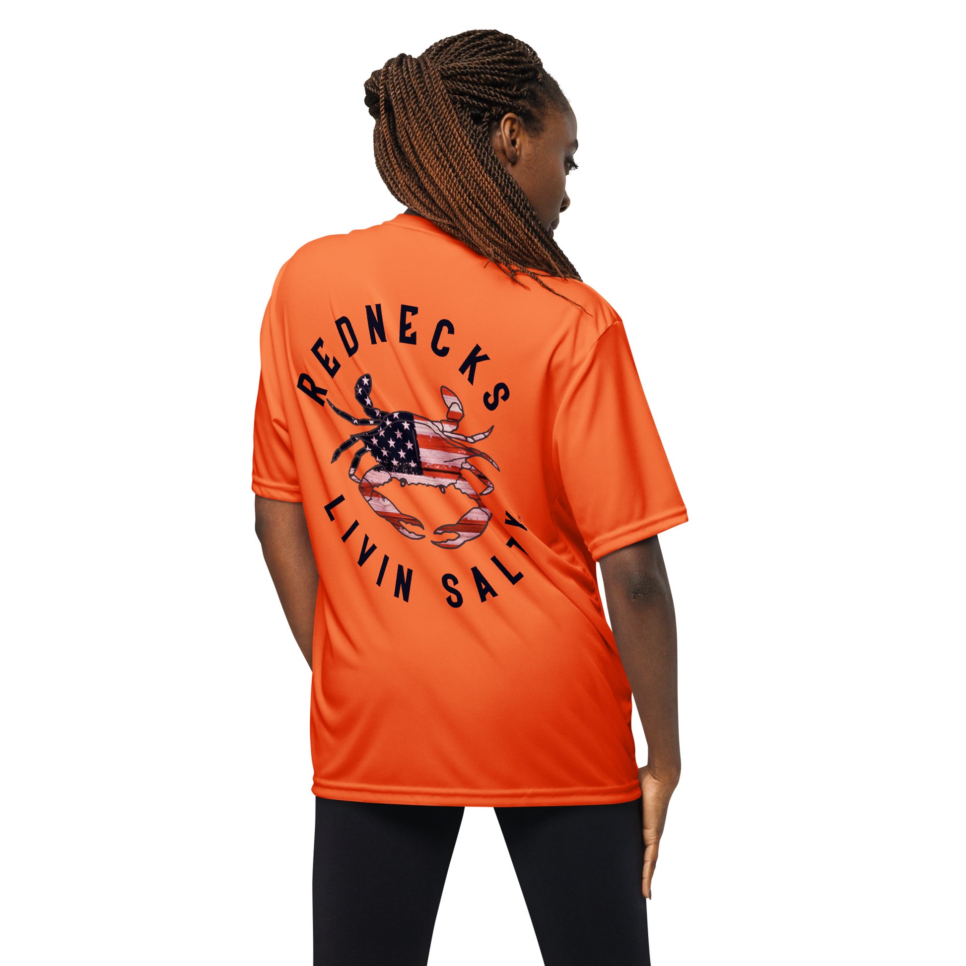 Stay cool, dry, and confident even during the most intense activities in this unisex performance crew neck t-shirt. Made from premium, moisture-wicking fabric with odor resistance, stain release, and UV protection, this shirt’s perfect for going to the gym, playing sports, hiking, or any other activity.