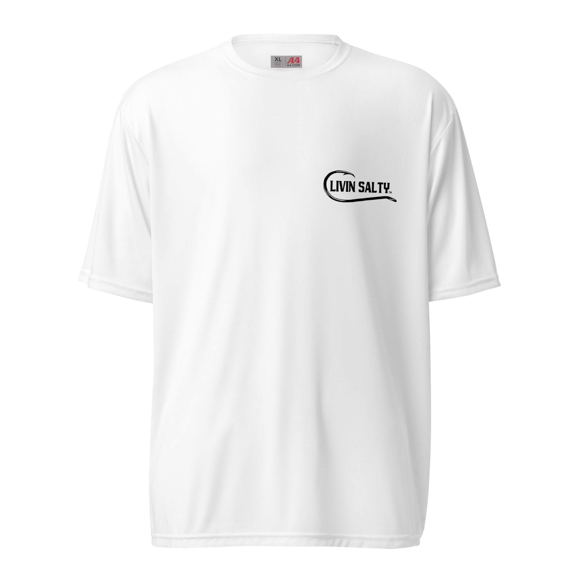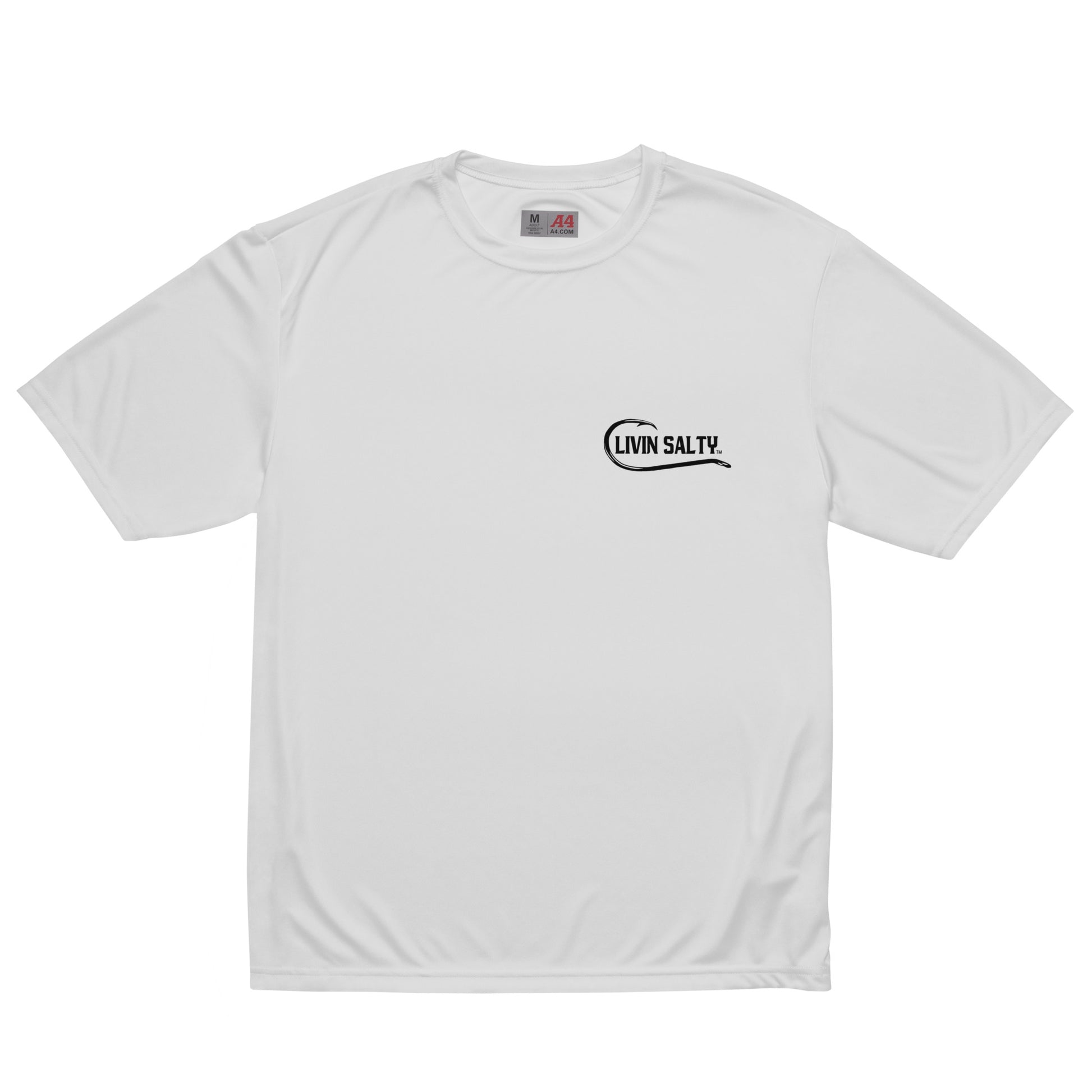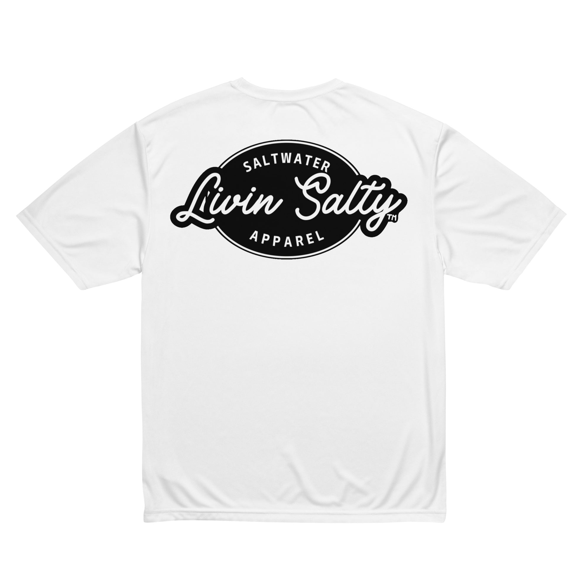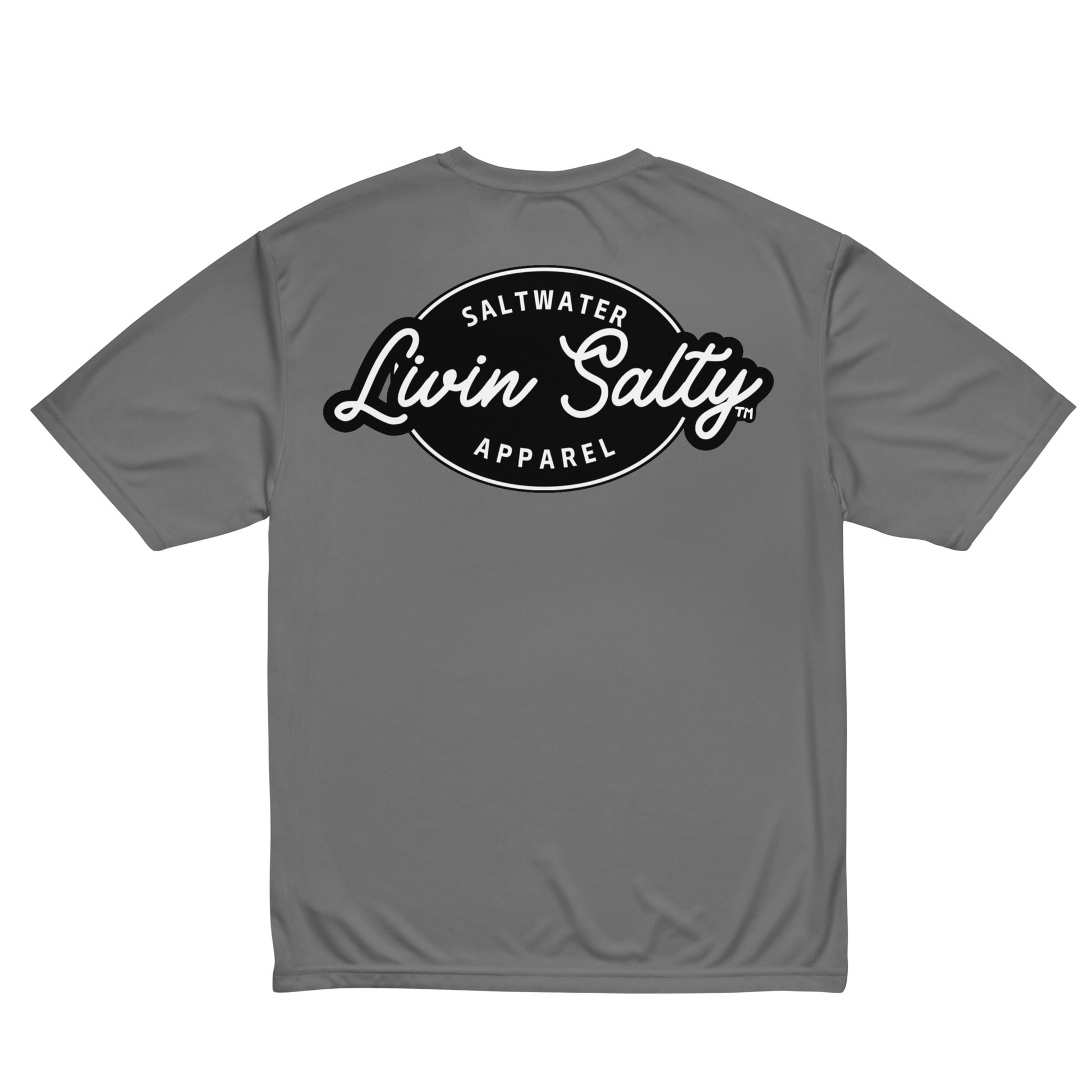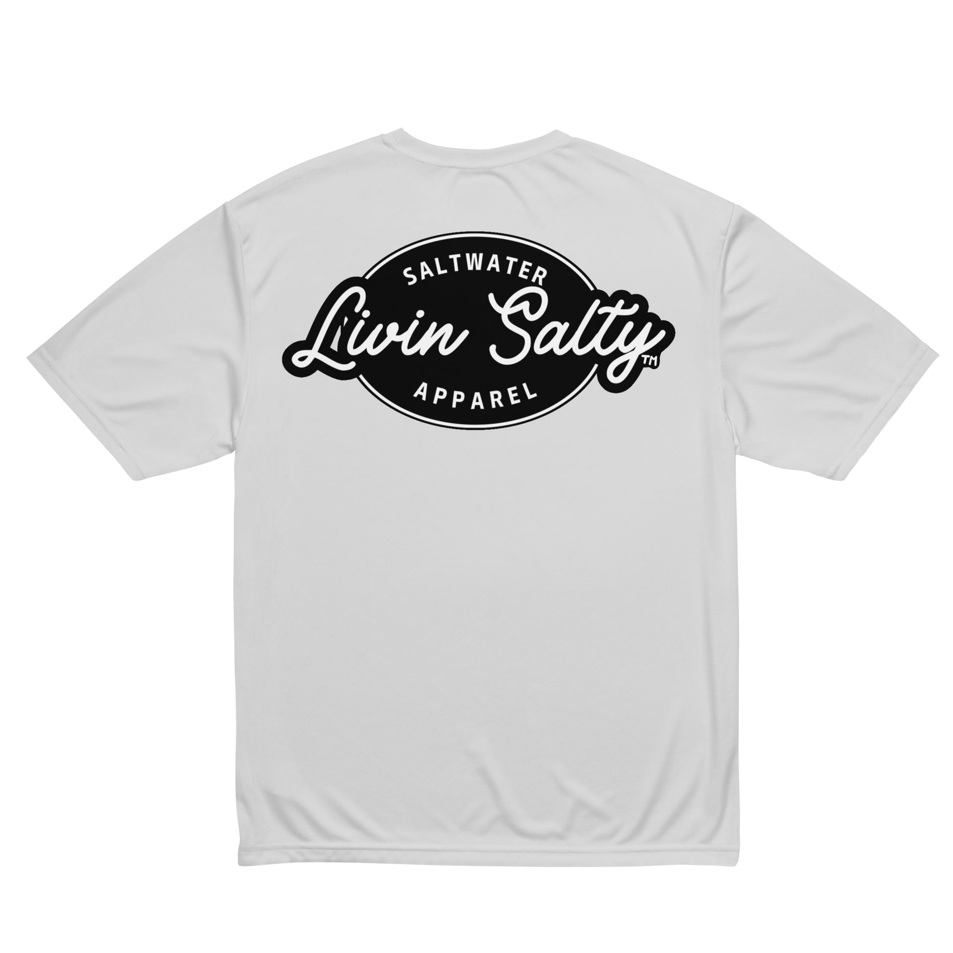 Featuring LIVIN SALTY hook logo on front chest, with LIVIN SALTY on the back.