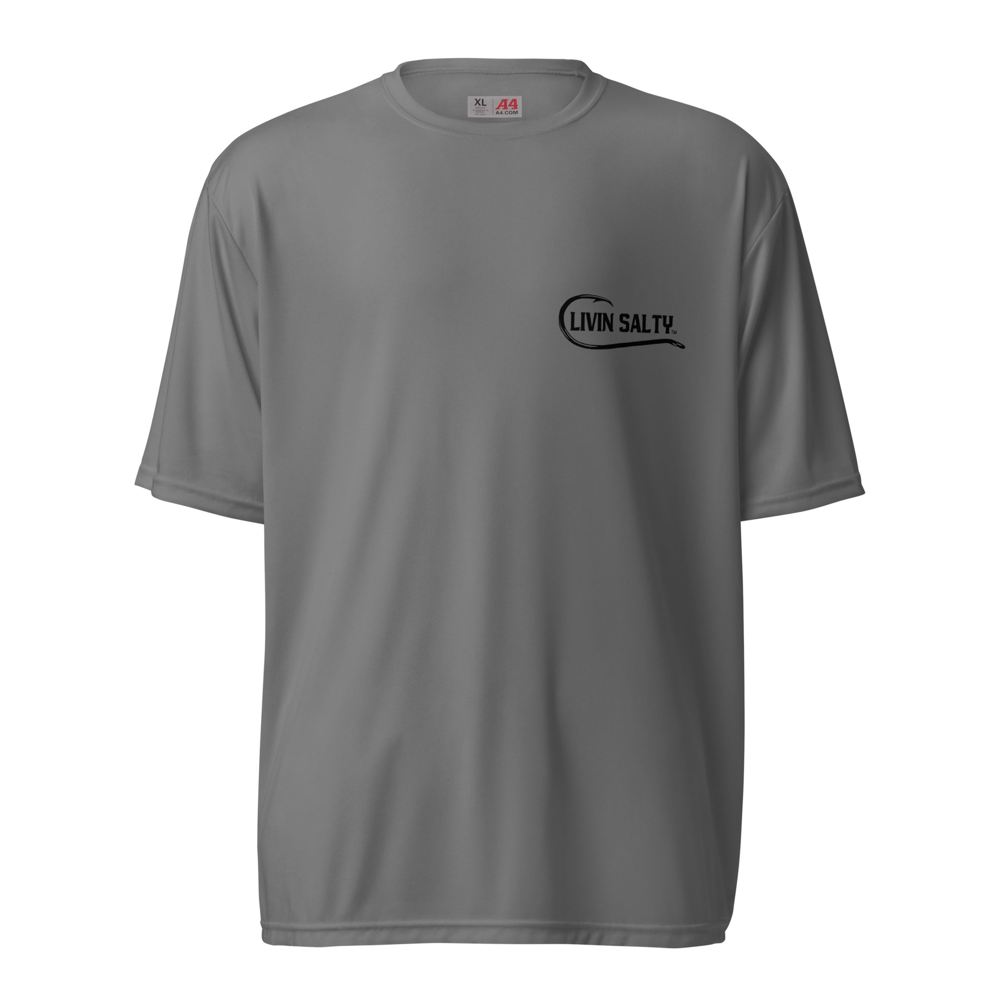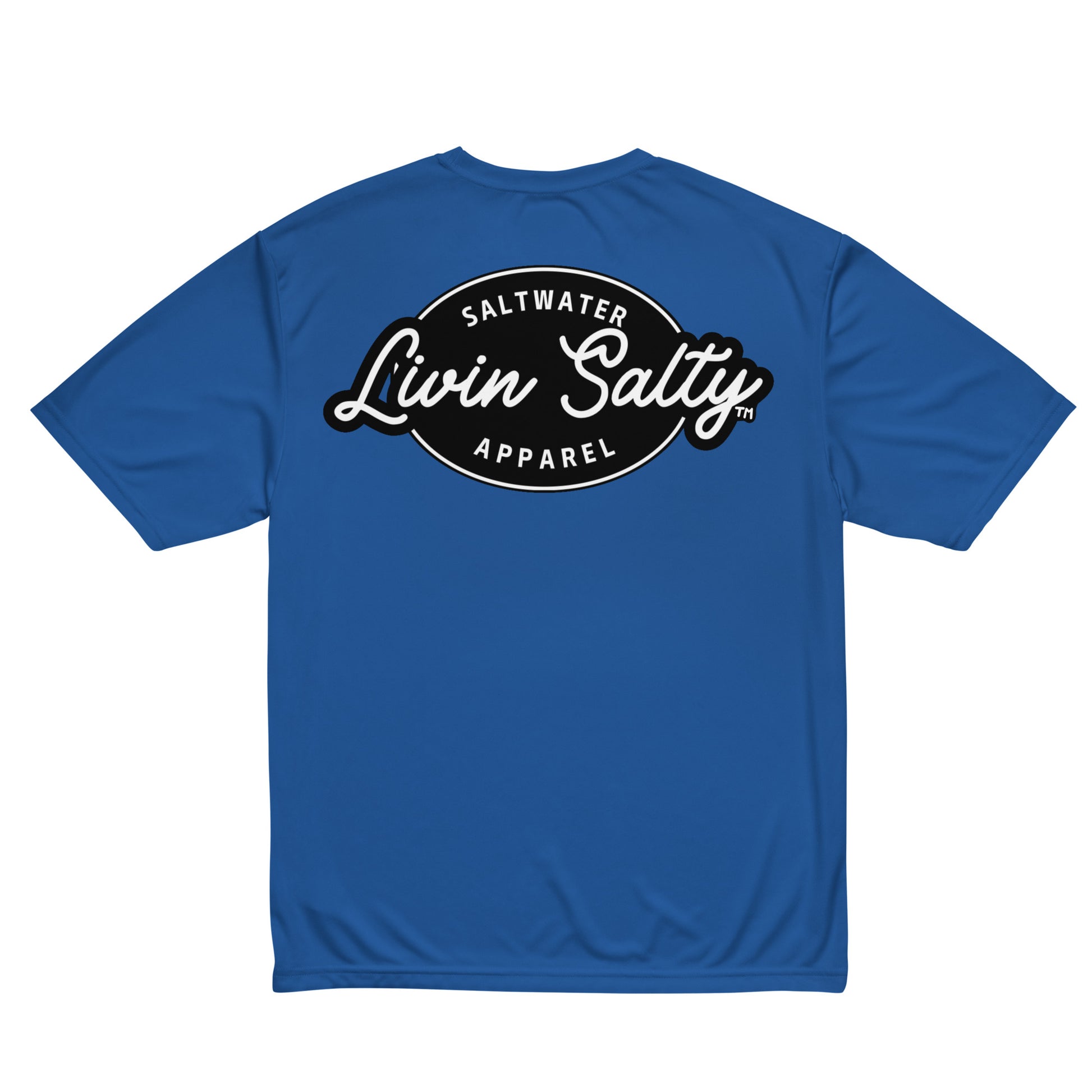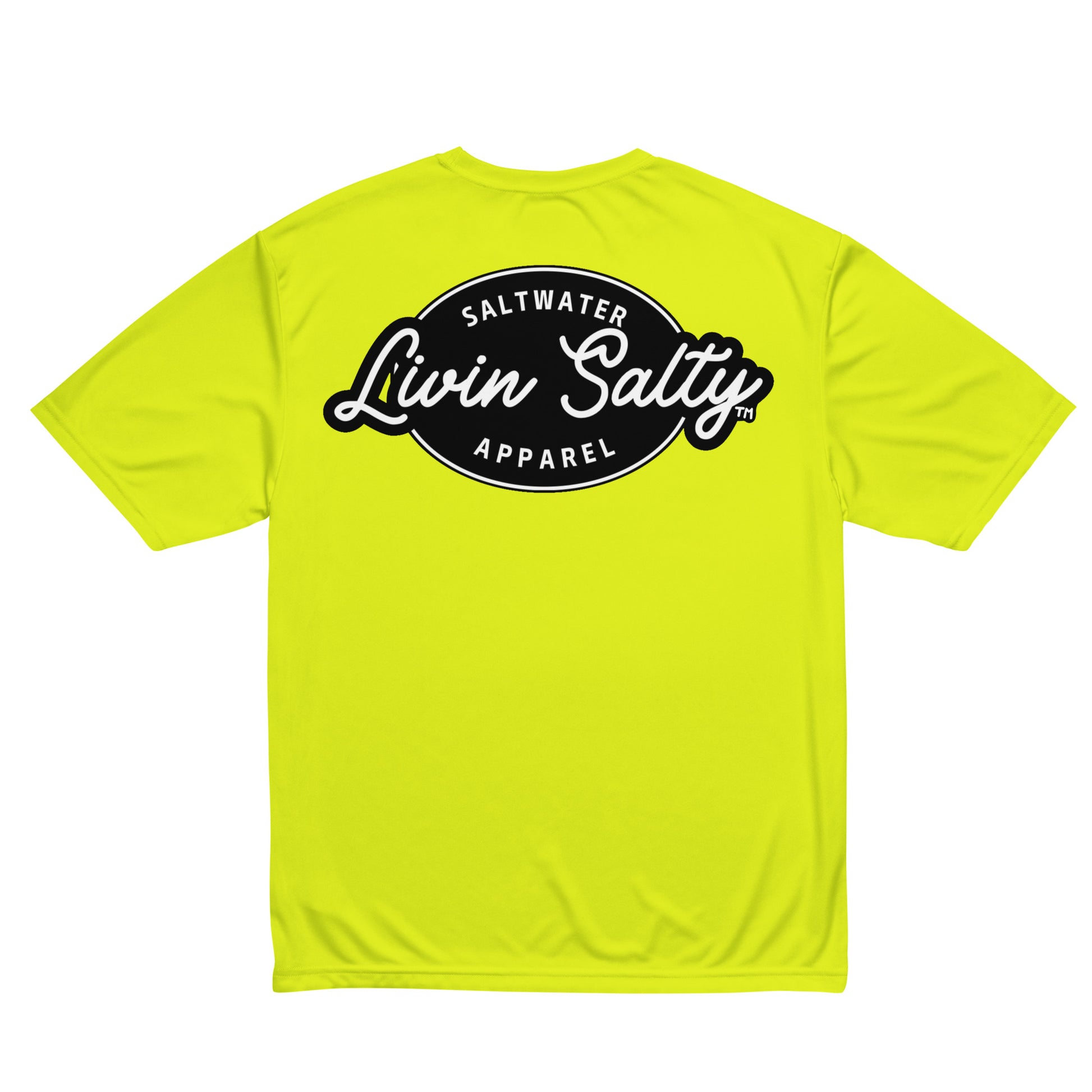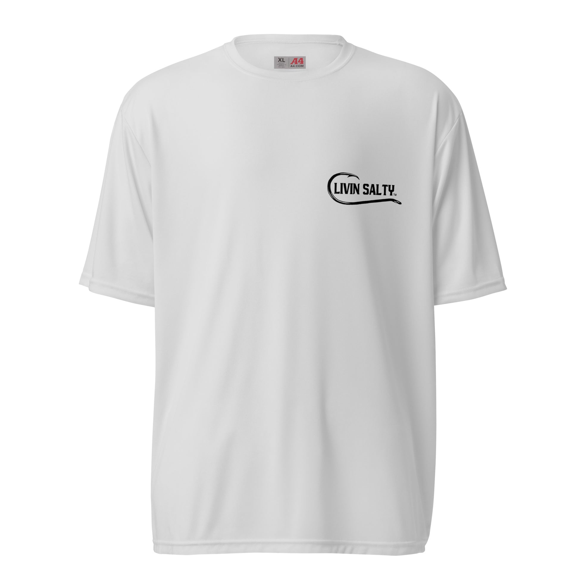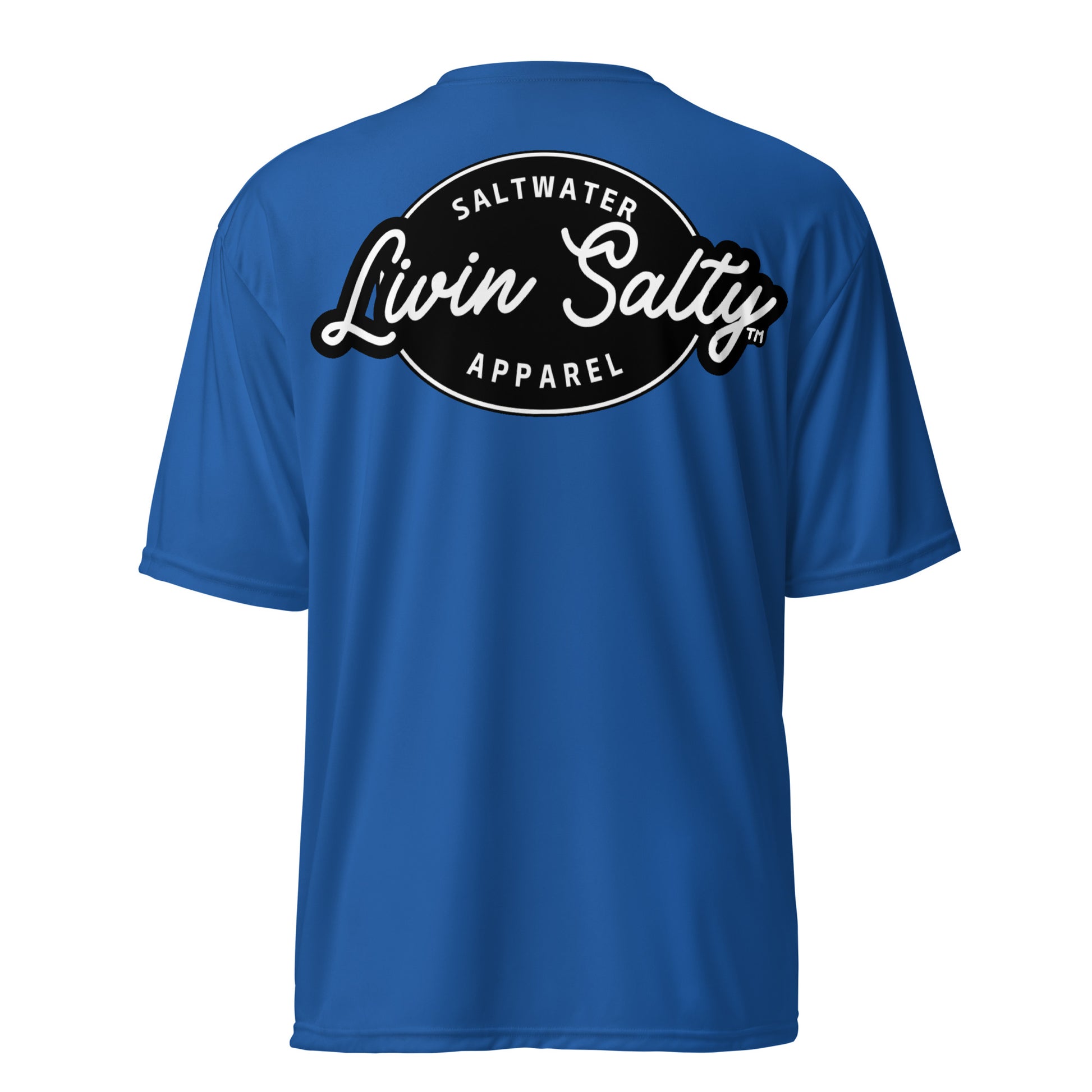 Featuring LIVIN SALTY hook logo on front chest, with LIVIN SALTY on the back.