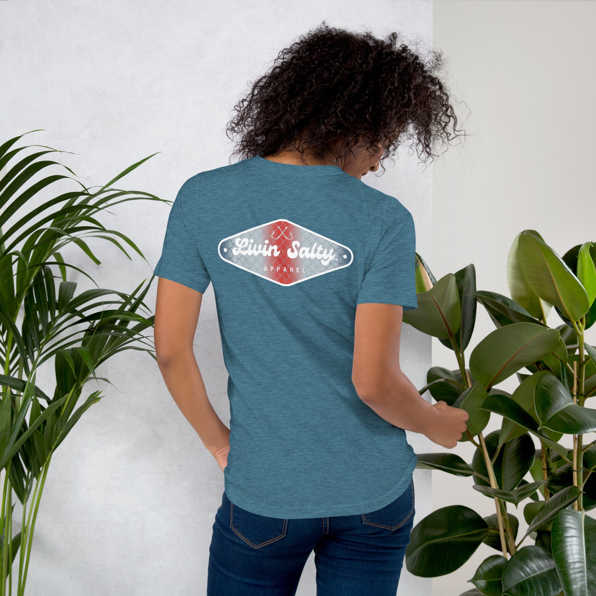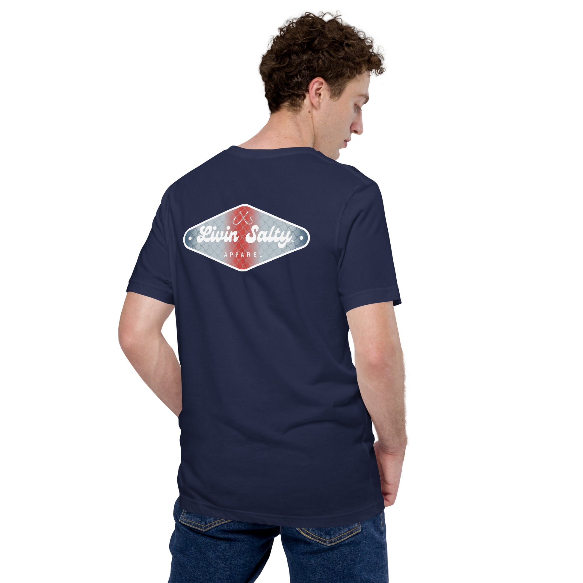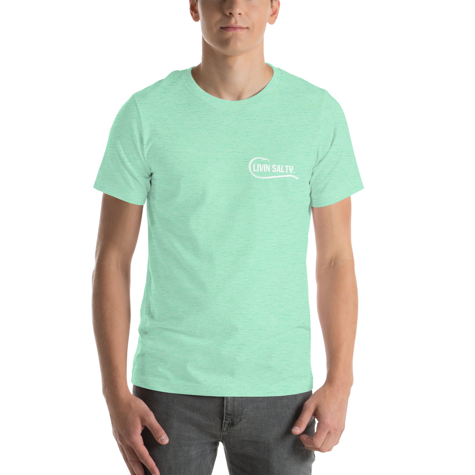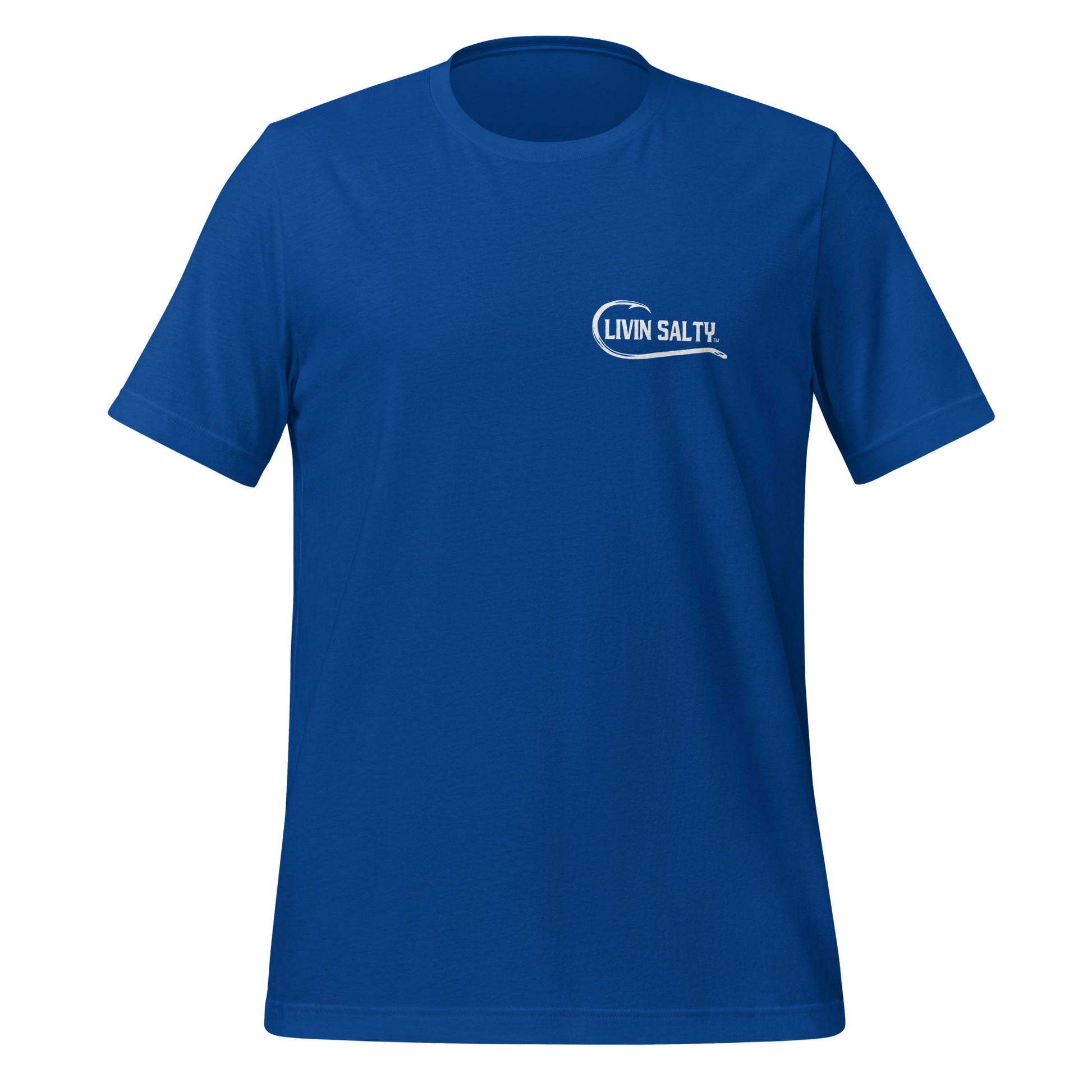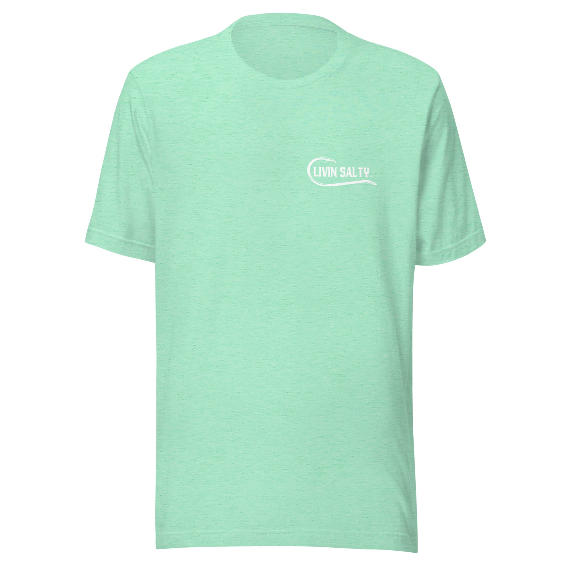Featuring LIVIN SALTY hook logo on the front with LIVIN SALTY on back.