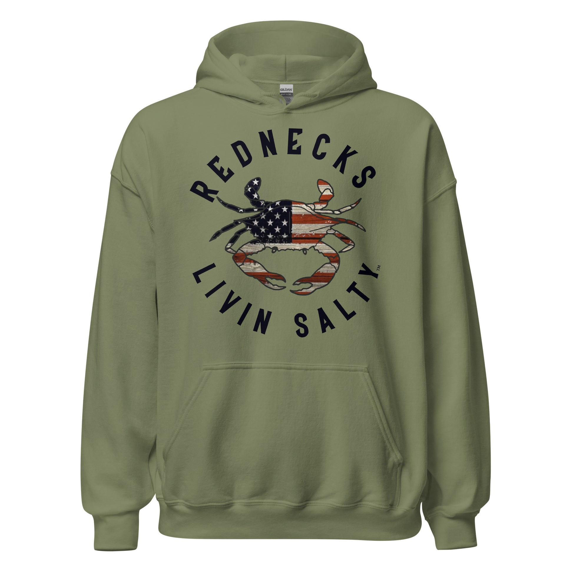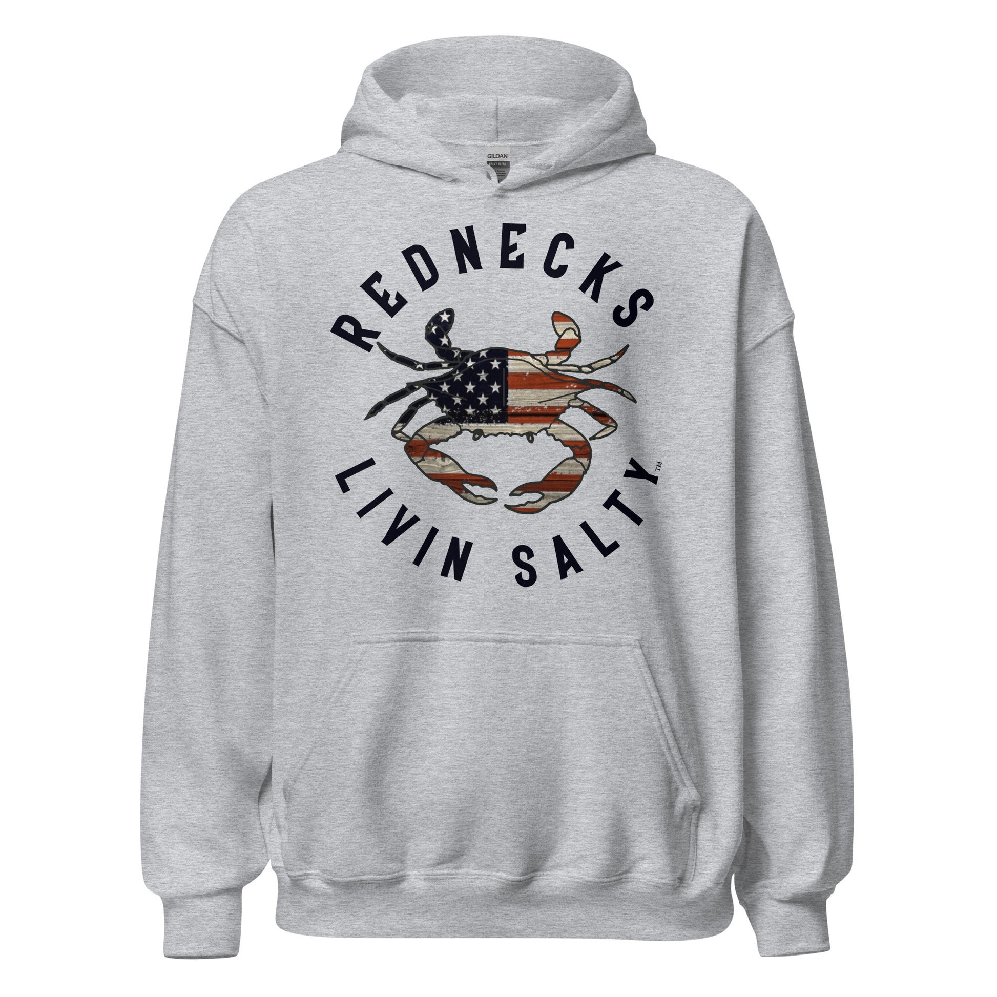 Featuring this popular REDNECKS LIVIN SALTY Crab hoodie.