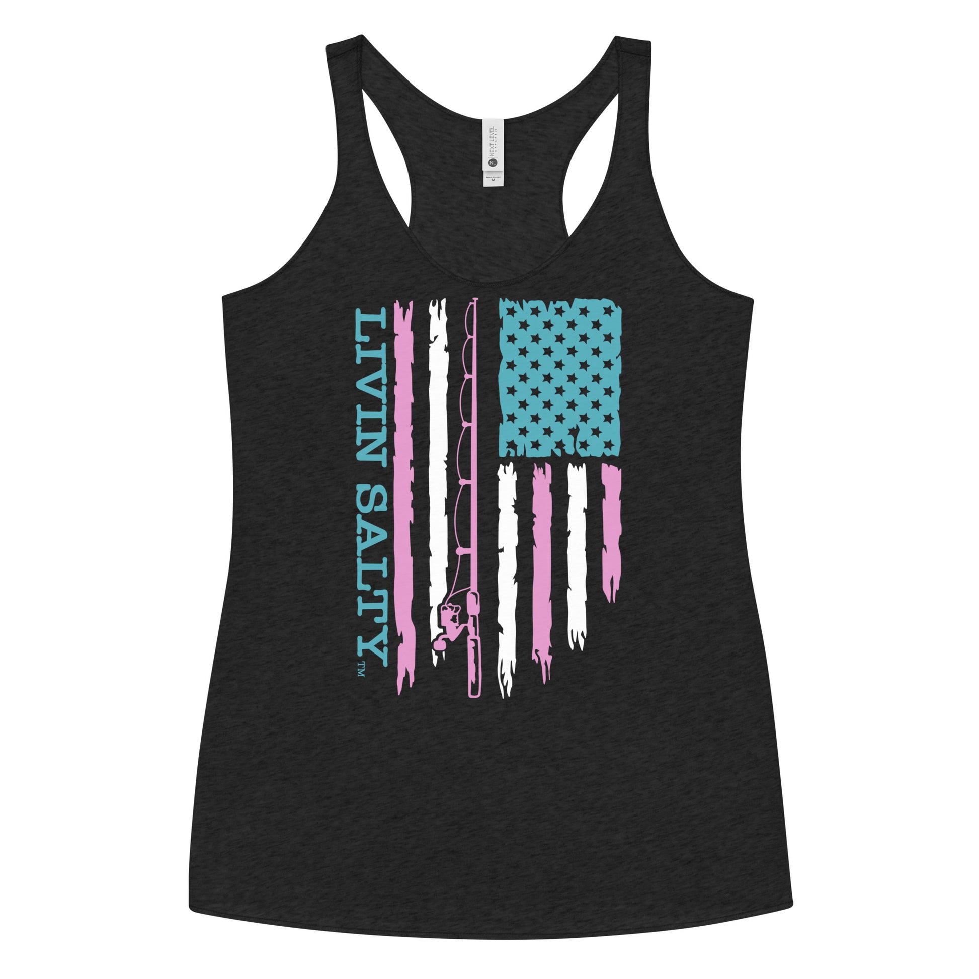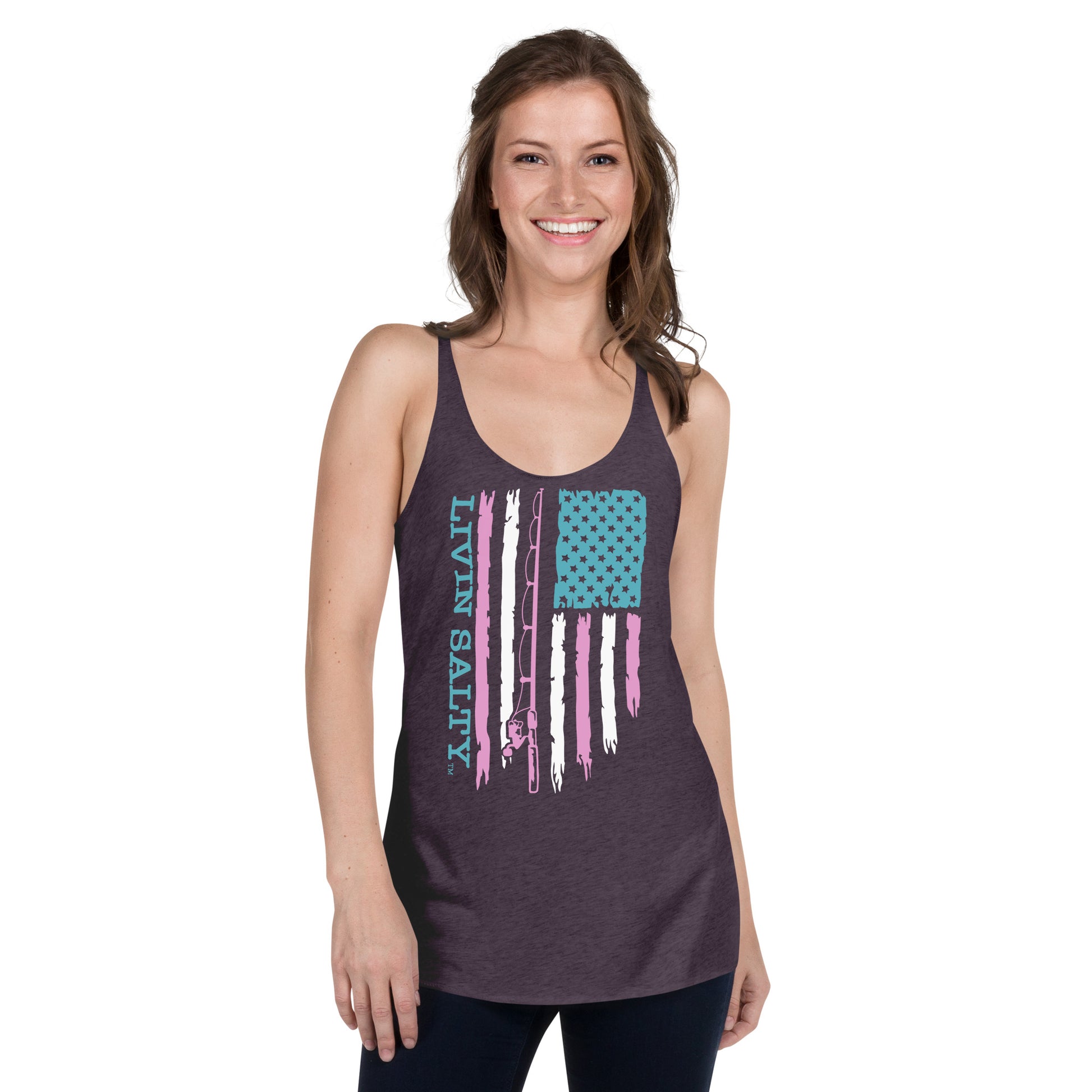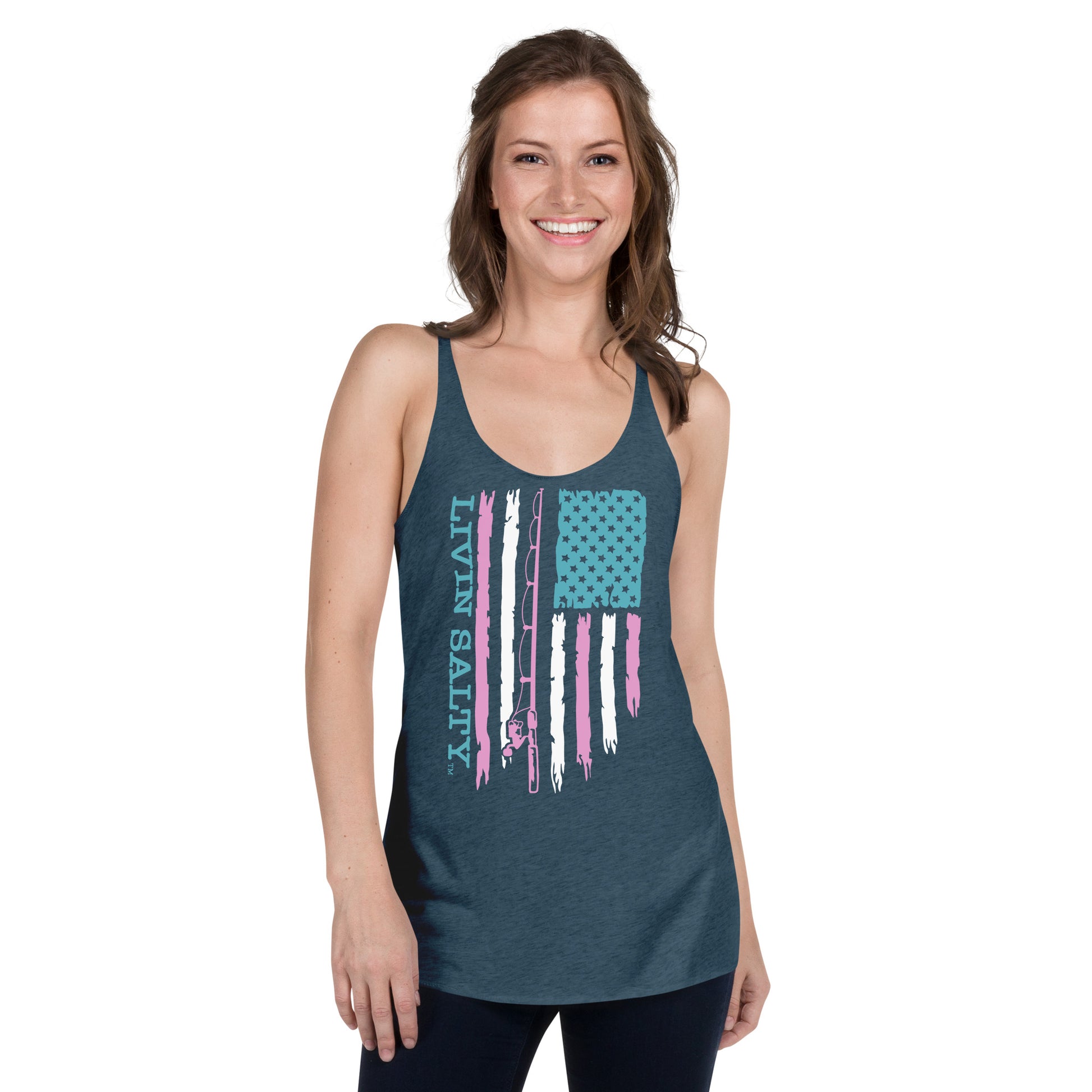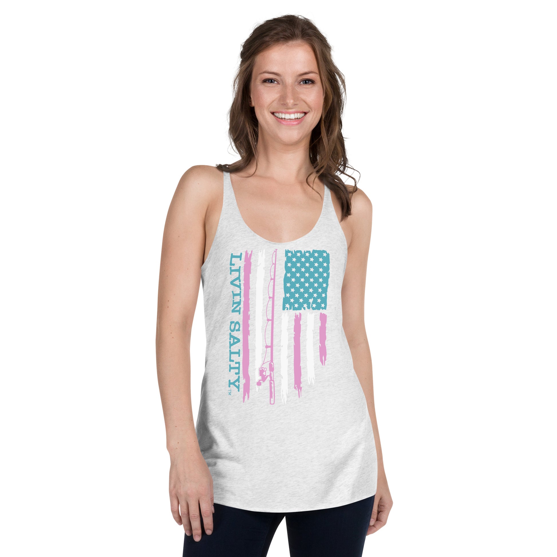 This racerback tank is soft, lightweight, and form-fitting with a flattering cut and raw edge seams for an edgy touch.