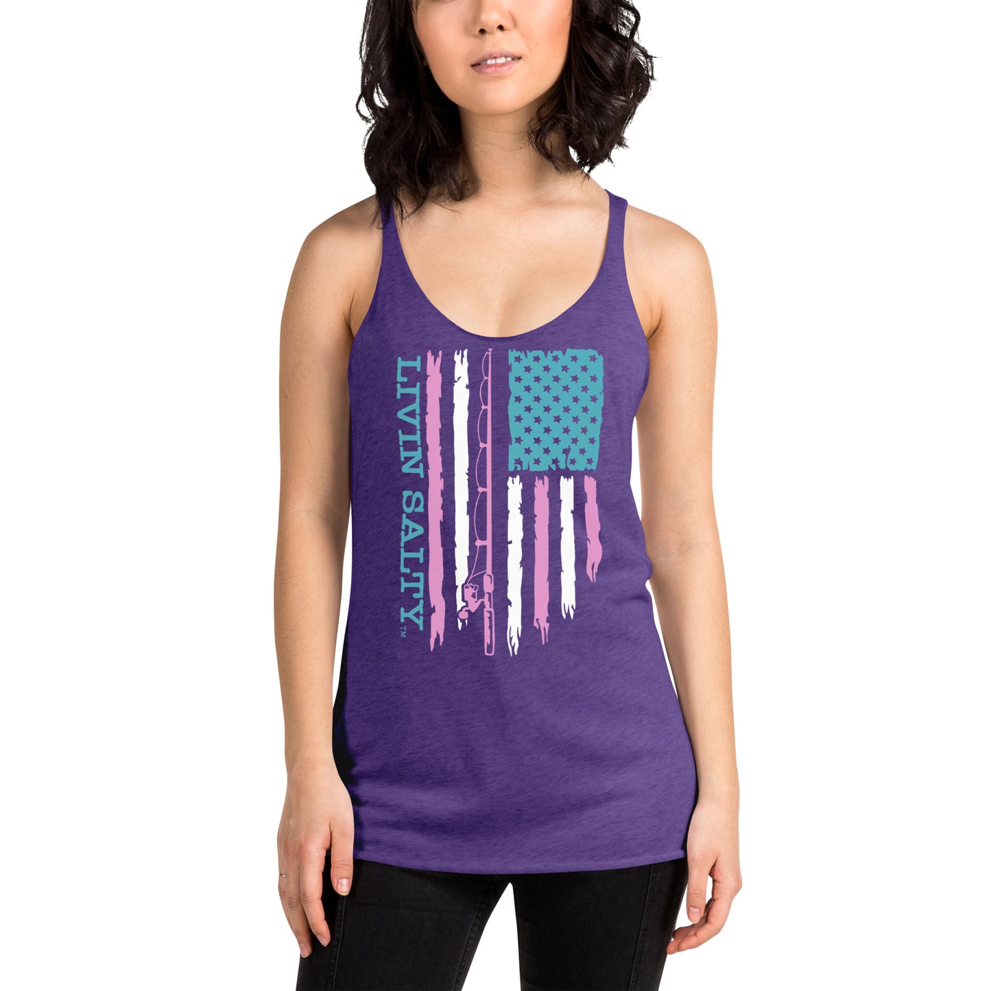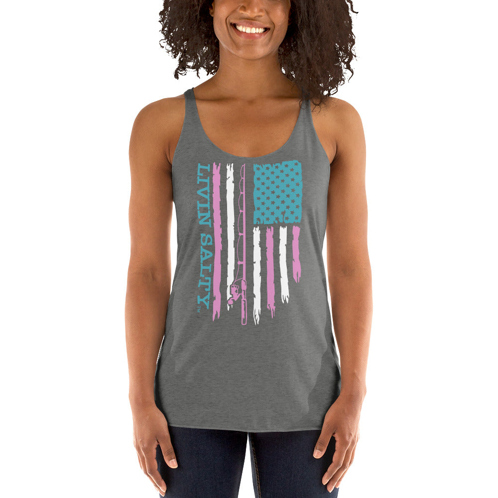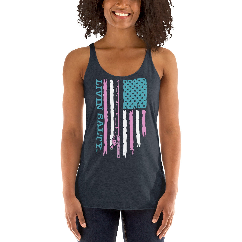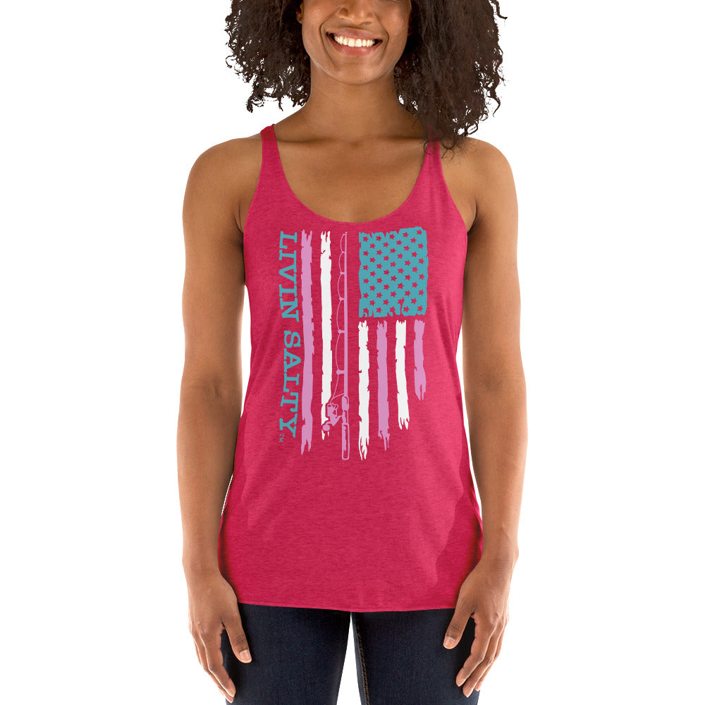 This racerback tank is soft, lightweight, and form-fitting with a flattering cut and raw edge seams for an edgy touch.