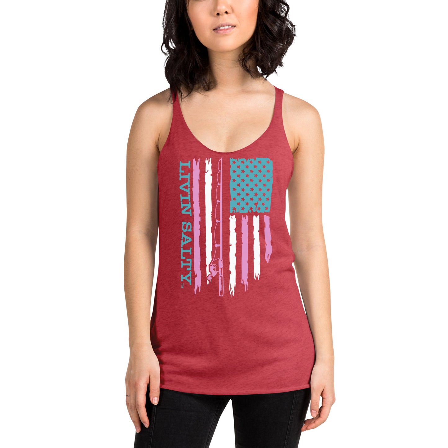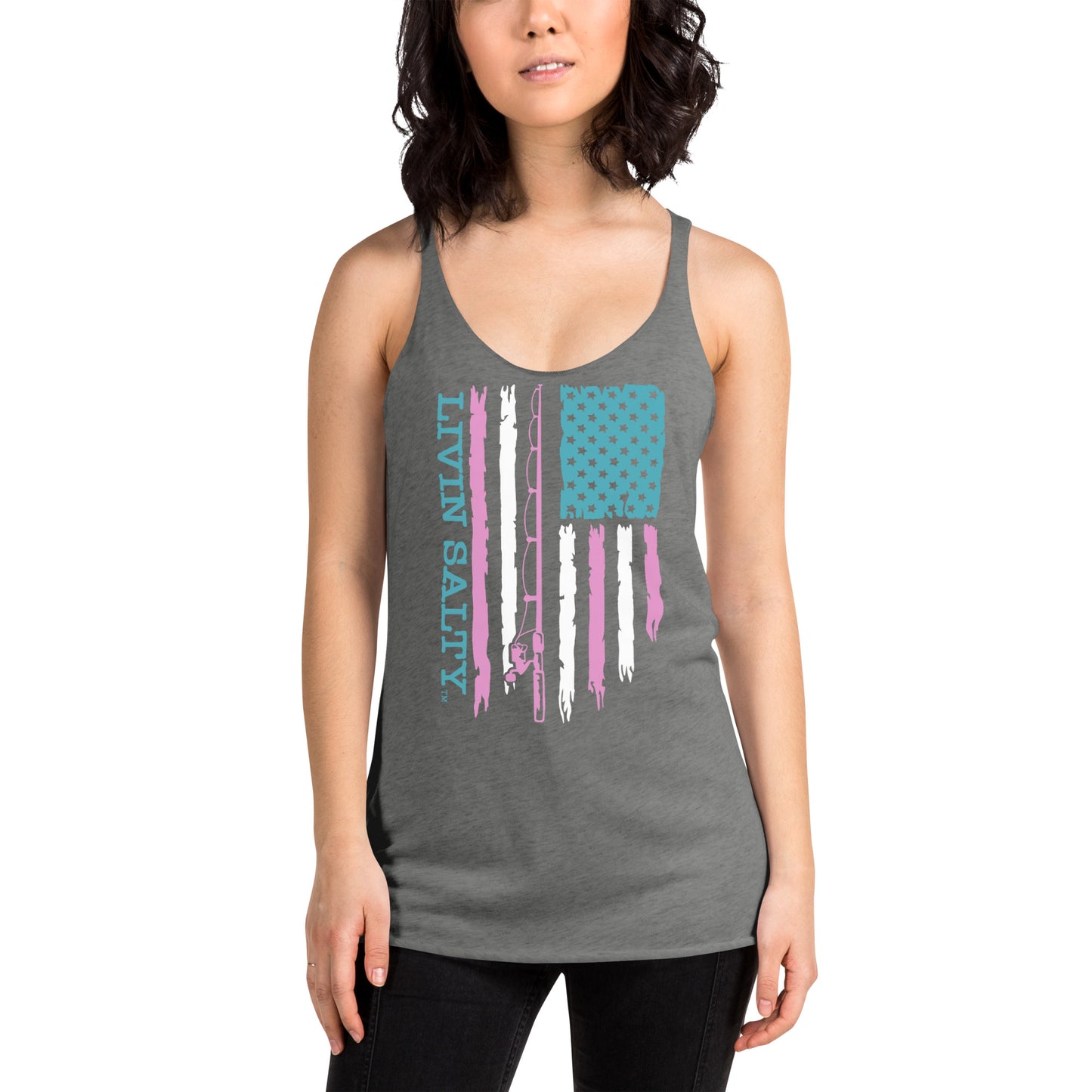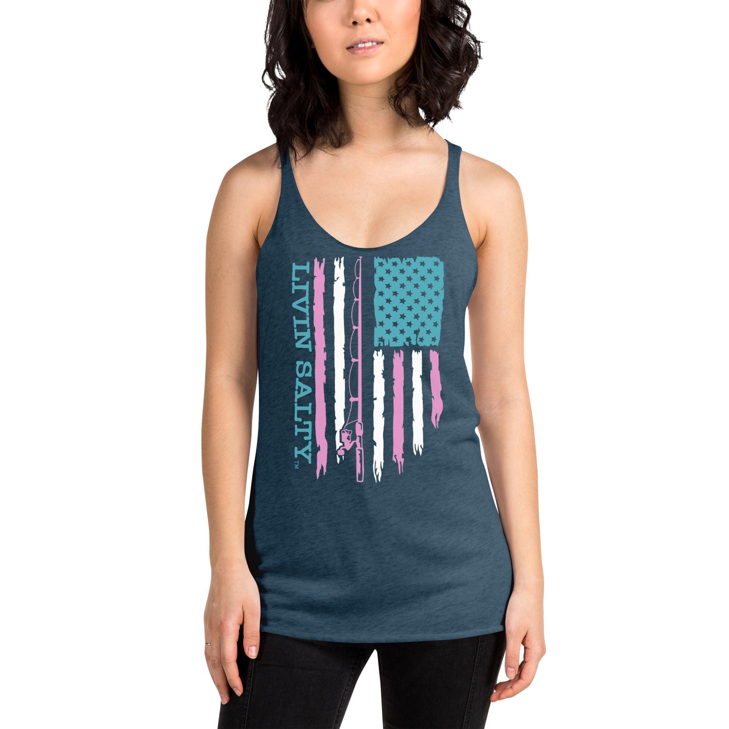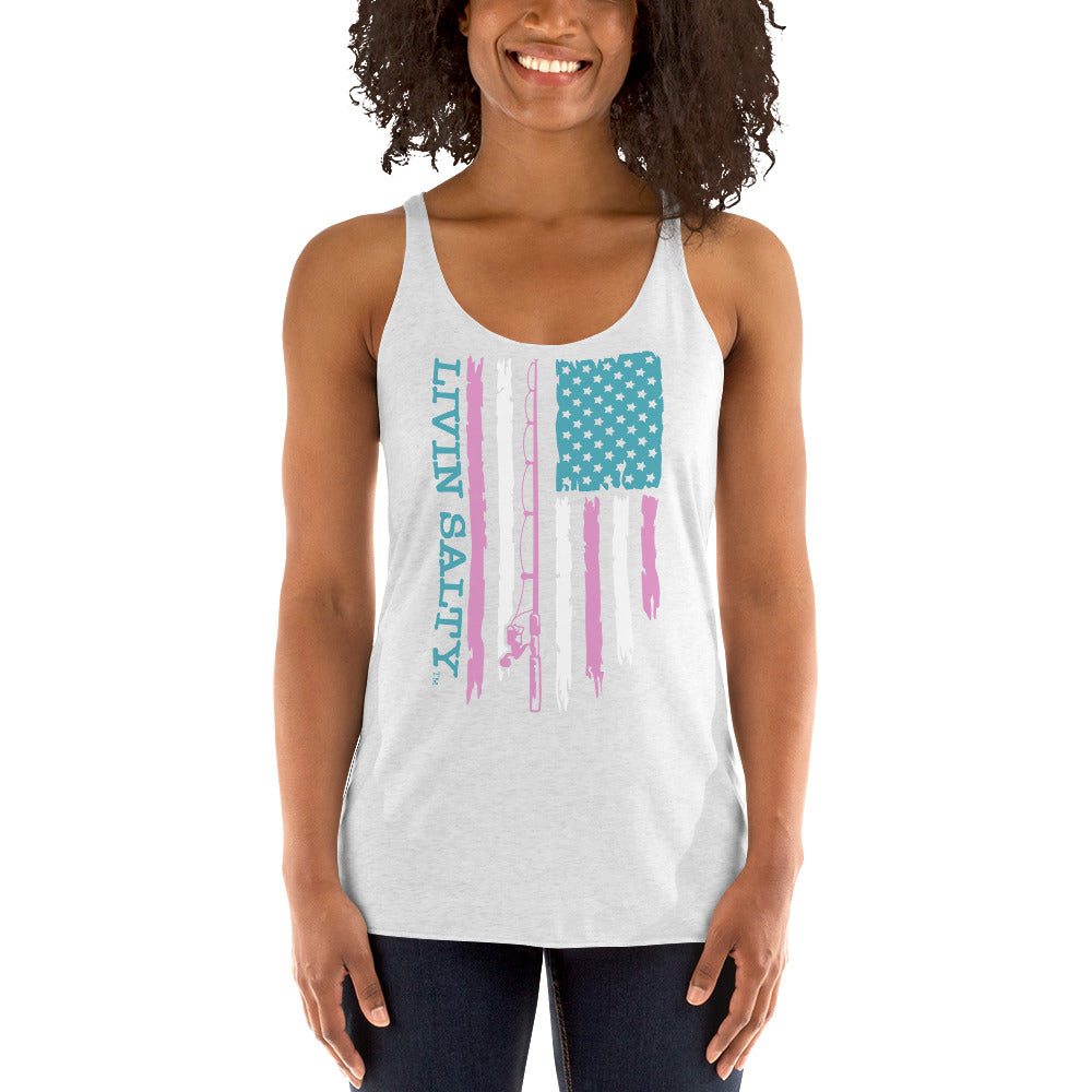 This racerback tank is soft, lightweight, and form-fitting with a flattering cut and raw edge seams for an edgy touch.