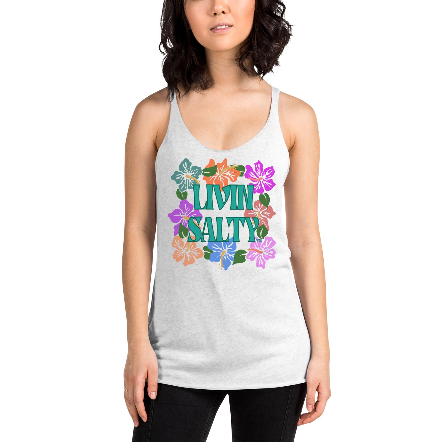 Featuring front LIVIN SALTY floral designs.