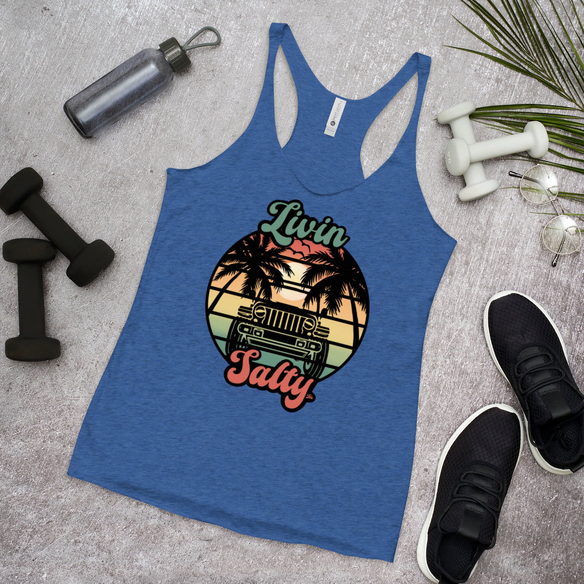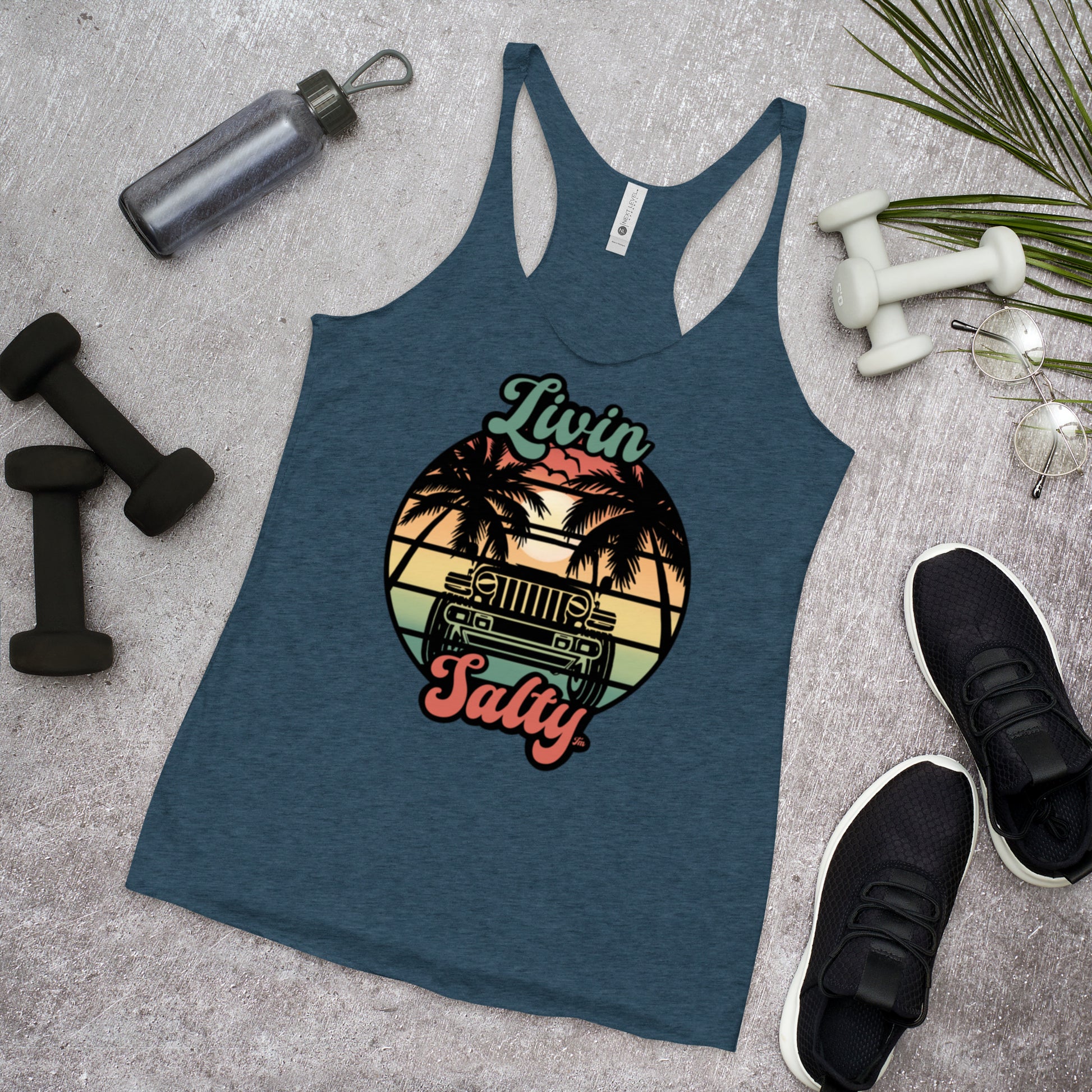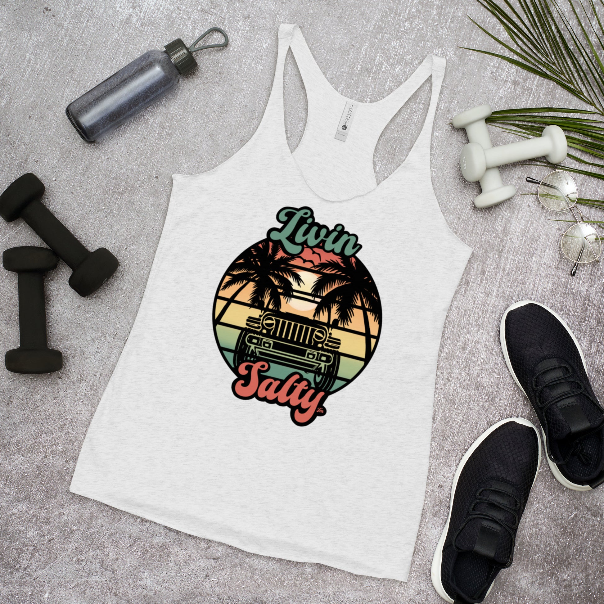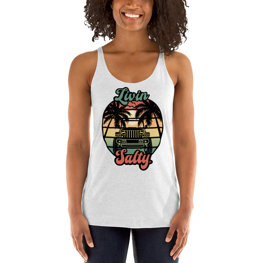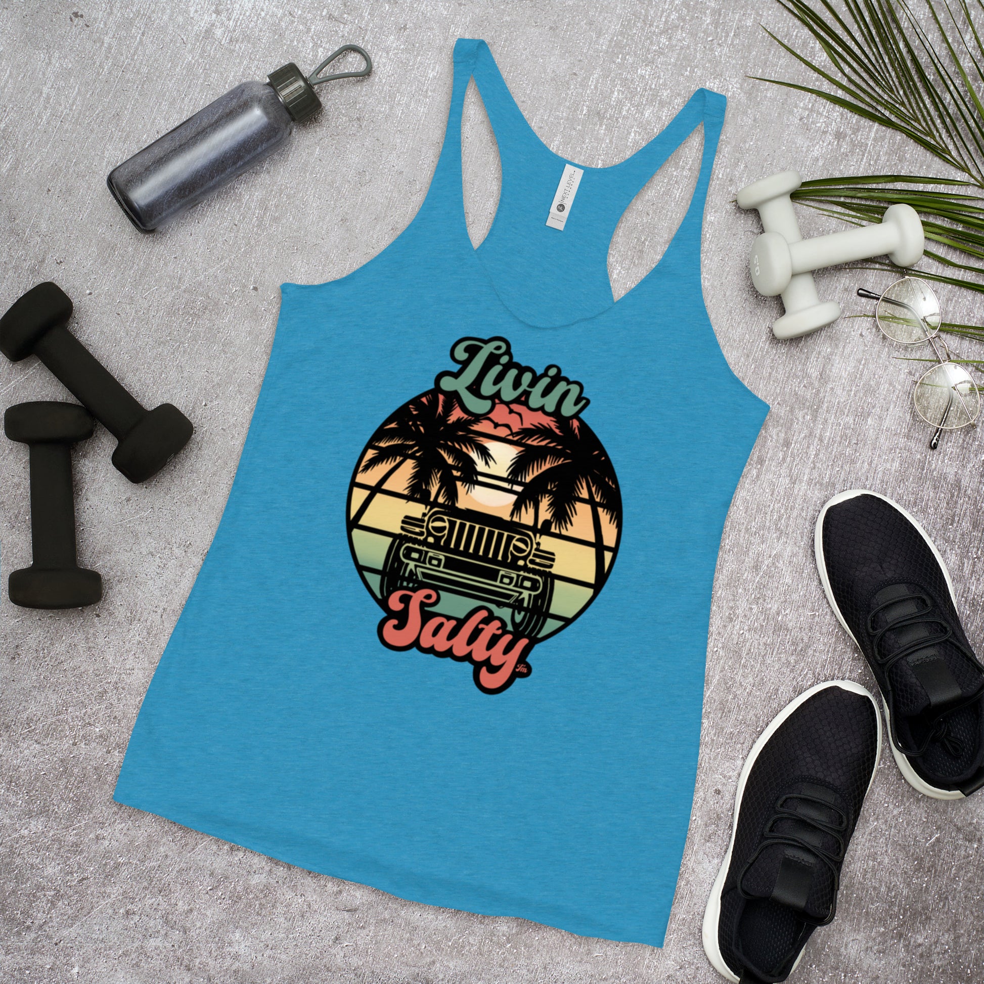 Women's Livin Salty Jeep/Beach Racerback Tank